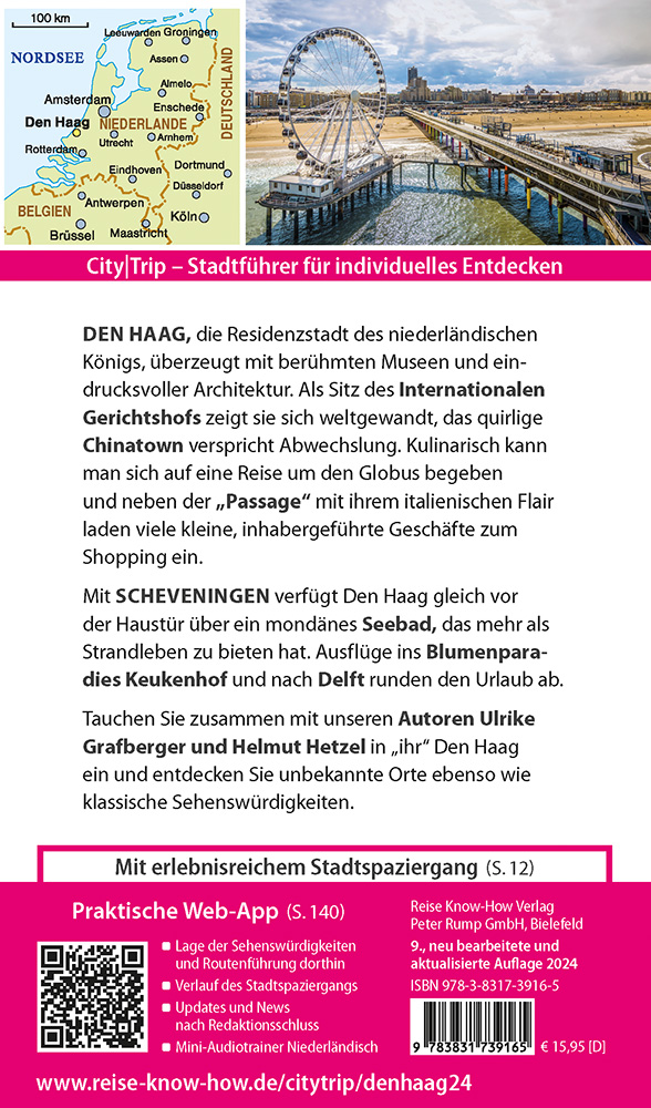 Dazu: kostenlose Web-App für Smartphone, Tablet und PC mit Stadtplan- und Satellitenansichten passend zum Text, Routenführung zu allen beschriebenen Sehenswürdigkeiten, Verlauf des Stadtspaziergangs, seitenbezogenen Updates nach Redaktionsschluss sowie einem Mini-Audiotrainer Niederländisch