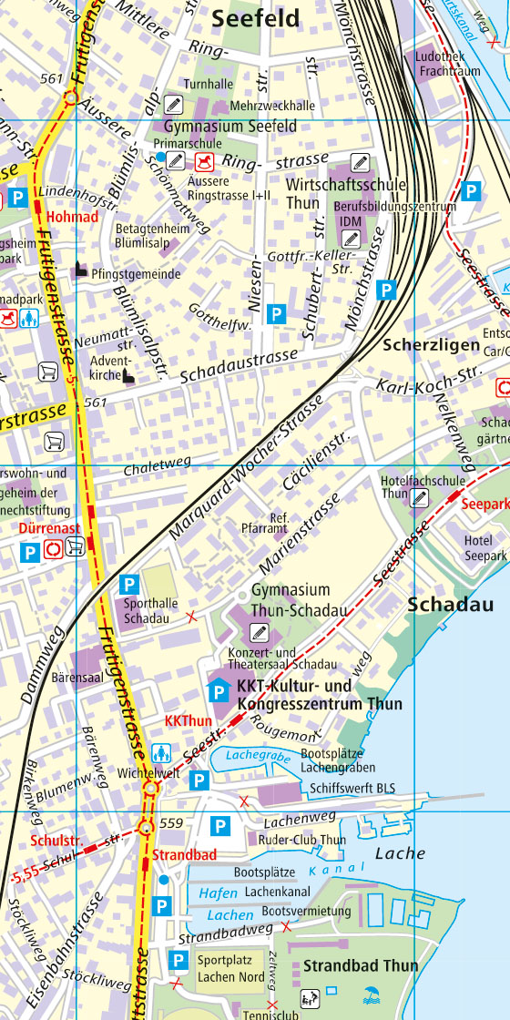 Unser Stadtplan von Thun bietet Ihnen alles, was Sie brauchen, um sich in dieser wunderschönen Stadt und den umliegenden Gebieten zurechtzufinden. Der Plan umfasst nicht nur die Innenstadt von Thun, sondern auch die Orte Steffisburg, Allmendingen und Gwatt.