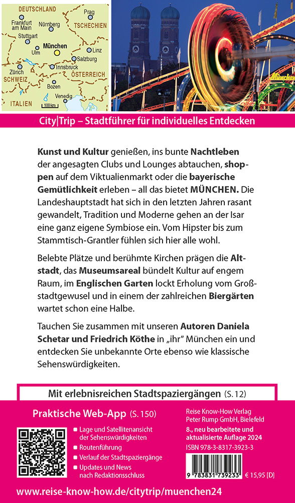 Dazu: kostenlose Web-App für Smartphone, Tablet und PC mit Stadtplan- und Satellitenansichten passend zum Text, Routenführung zu allen beschriebenen Sehenswürdigkeiten, Verlauf der Stadtspaziergänge, seitenbezogenen Updates nach Redaktionsschluss