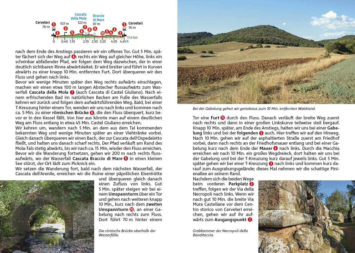 Jede Wanderung ist mit einer zuverlässigen Wegbeschreibung, einer detaillierten Wanderkarte mit Routeneintrag und einem aussagekräftigen Höhenprofil ausgestattet. Geprüfte GPS-Tracks, die zum Download bereitstehen, sorgen für eine einfache Navigation. Alle Wanderungen berücksichtigen außerdem ausreichend Zeit für die Entdeckungen der Klöster, Villen und Altstädte, die das Latium so einzigartig machen.