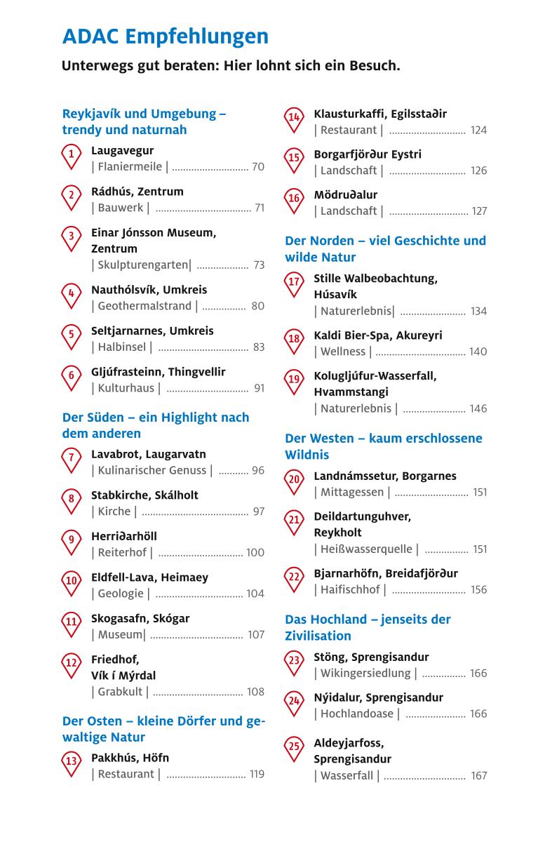 ADAC Top Tipps und Empfehlungen für ungetrübtes Reisevergnügen, Quickfinder für die schnelle Orientierung im Buch, zahlreiche Servicekästen sowie verlässliche Mobil- und Spartipps.