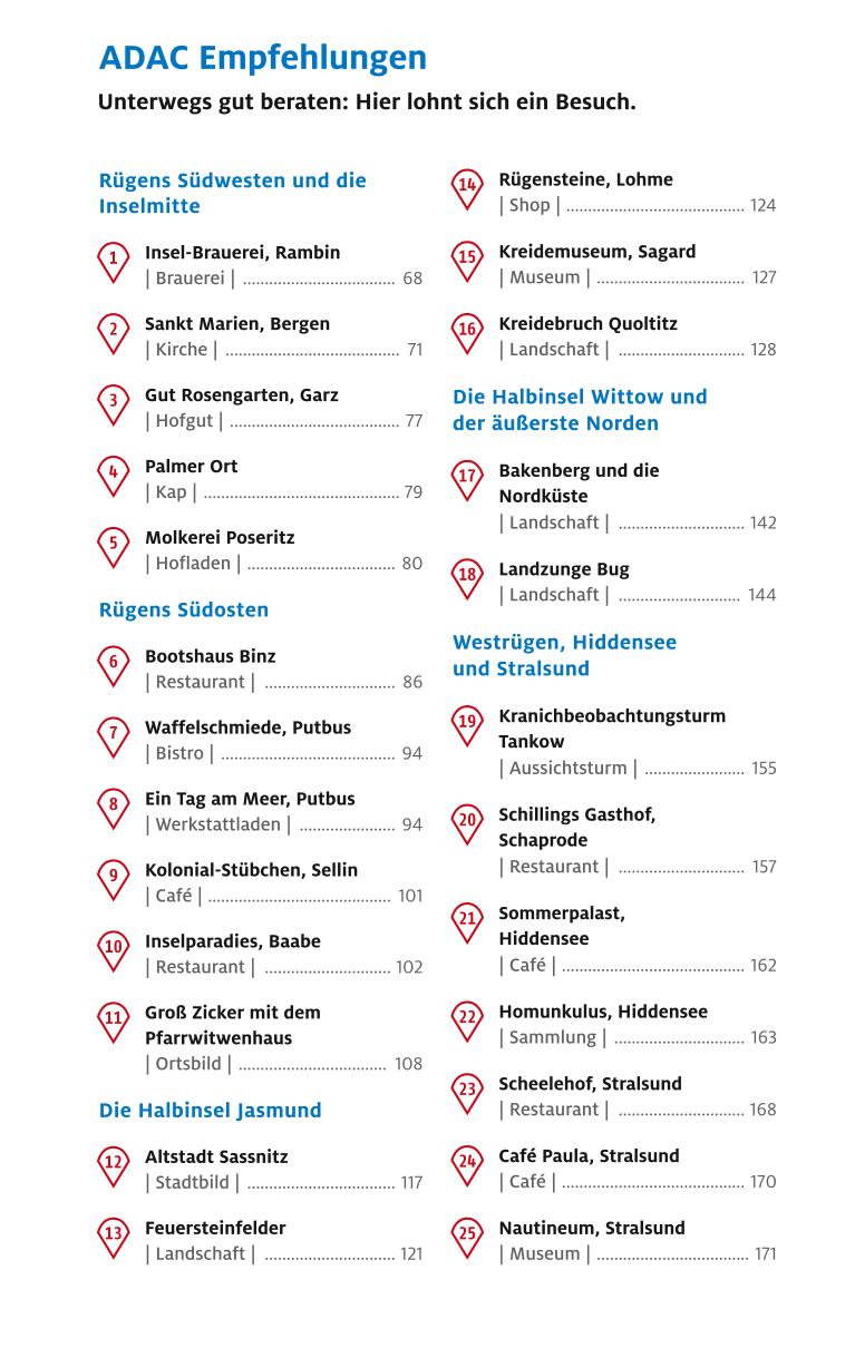ADAC Top Tipps und Empfehlungen für ungetrübtes Reisevergnügen, Quickfinder für die schnelle Orientierung im Buch, zahlreiche Servicekästen sowie verlässliche Mobil- und Spartipps.