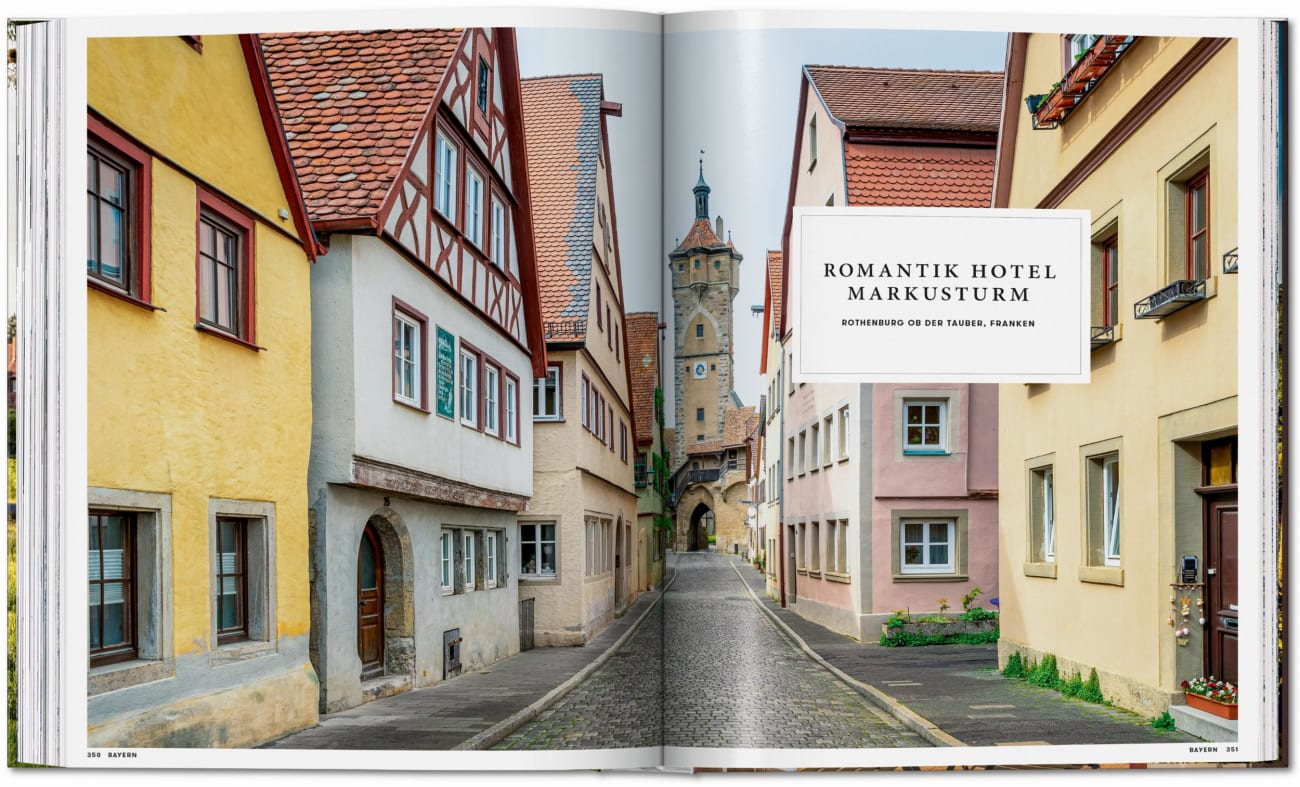 Von der Nordsee bis zu den Alpen bietet Deutschland eine große landschaftliche und kulturelle Vielfalt. Für eine Entdeckungsreise hat Angelika Taschen stimmungsvolle Unterkünfte ausgewählt, darunter Grandhotels, Bed & Breakfasts, Schlösser, ein Kloster, Glamping-Zelte und mehr, die mit einladenden Fotos und informativen Texten vorgestellt werden.