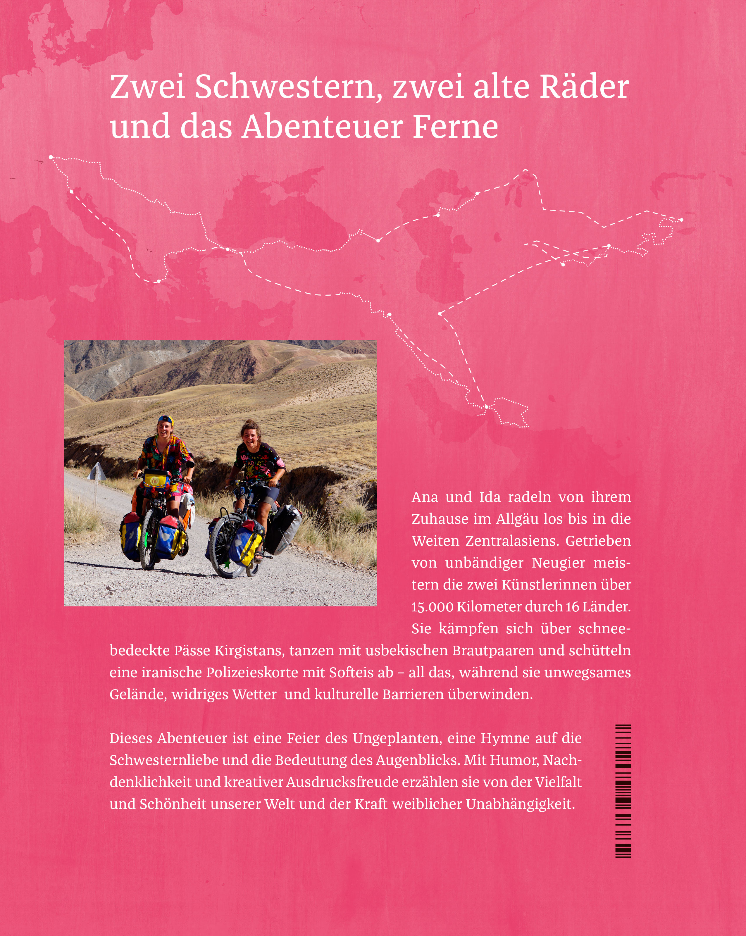 Ana und Ida Lutzenberger sind zwei abenteuerlustige Schwestern aus dem Allgäu, deren Leidenschaft für das Radfahren nur von ihrer kreativen Arbeit als Illustratorinnen und Künstlerinnen übertroffen wird. Mit ihren treuen Drahteseln brachen sie auf zu einer epischen Tour ganz weit Richtung Osten und wieder zurück, auf der sie mehr als 15.000 Kilometer durch 16 Länder zurücklegten.
