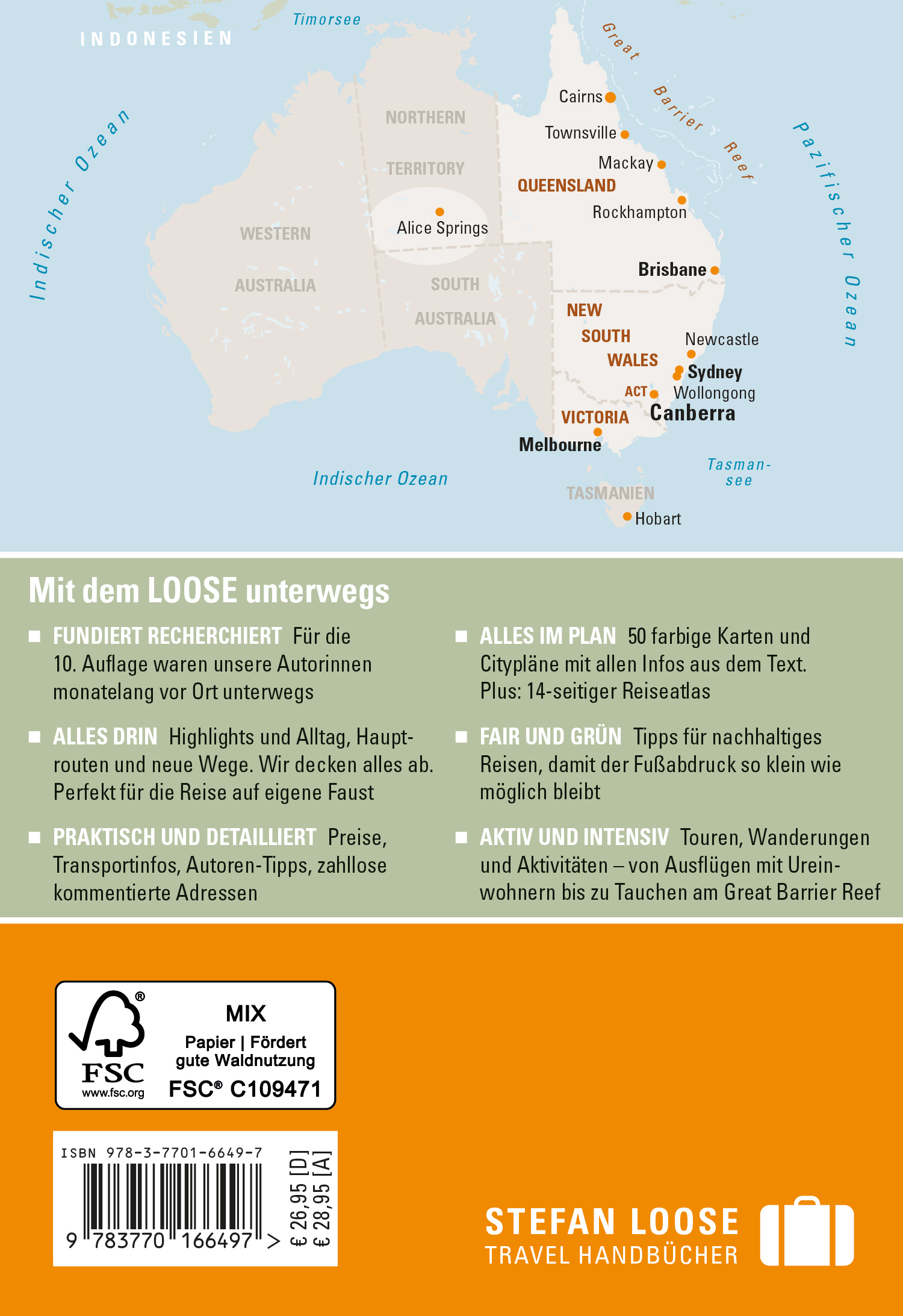 Das Stefan Loose Travel Handbuch Australien - Der Osten gibt einen fundierten Überblick über die Bundesstaaten an der Ostküste Queensland, New South Wales, Victoria, die Hauptstadt Canberra und das Rote Zentrum. Der Reiseführer bietet praktische Tipps und Hilfestellungen für jeden Australien-Besucher, vom Backpacker mit schmalem Geldbeutel über die Familie im Campervan bis hin zum "fortgeschrittenen" Traveller.