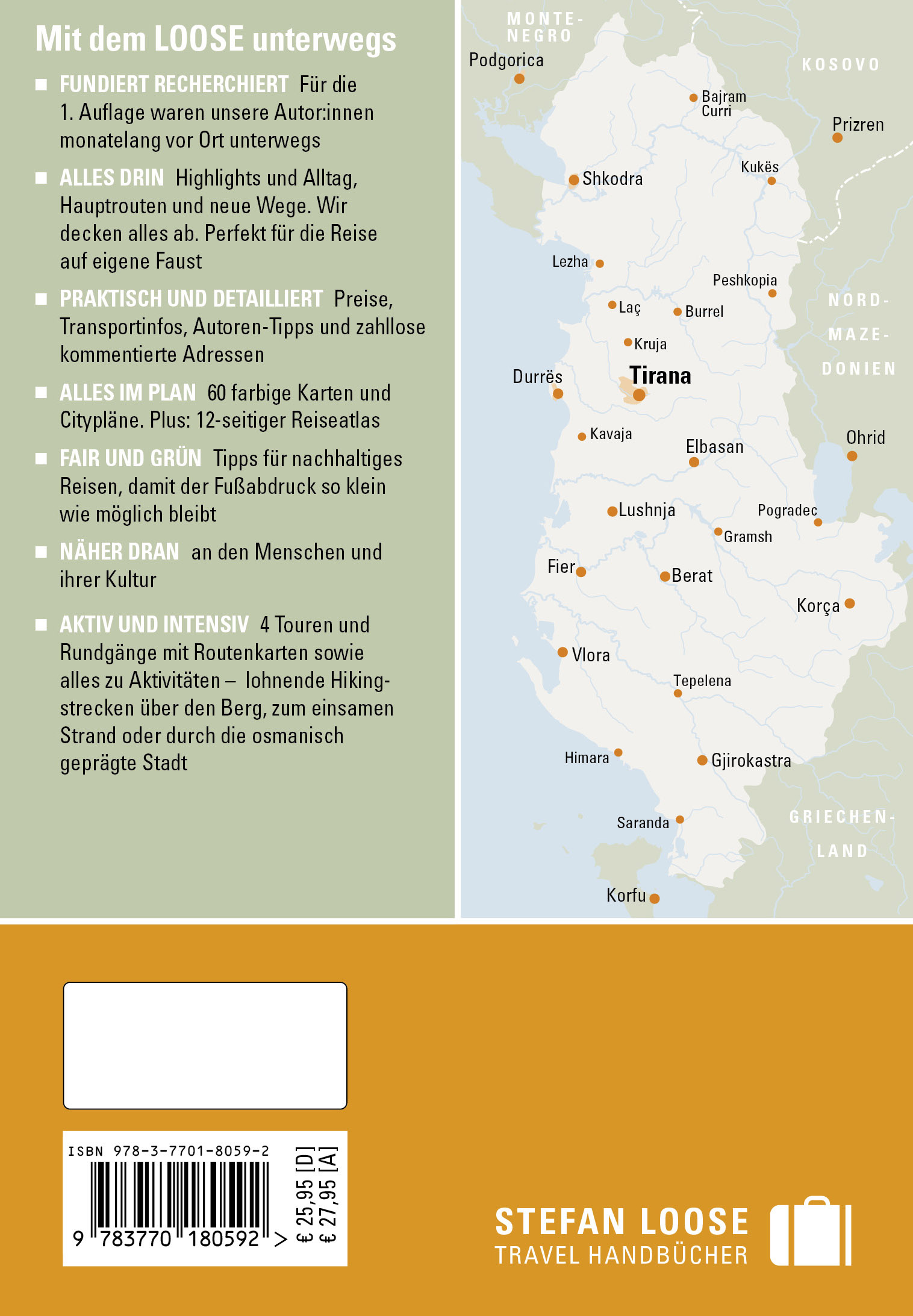 VON DEN BERGEN IM NORDEN BIS ZU den traumhaften Stränden im Süden: Albanien beeindruckt mit landschaftlicher Vielfalt und kulturellen Schätzen. In wenigen Jahren vom Geheimtipp zum Trendziel! Vor allem die spektakuläre Küste ist gut erschlossen. Viele Perlen liegen jedoch abseits der gängigen Routen: orthodoxe Kapellen, Bergseen, Buchten, ja ganze antike Stätten. Das Land ist zwar nicht größer als Brandenburg, aber wegen seines von Karstgebirgen durchzogenen Hinterlands nicht ganz leicht zu bereisen. Der Loose lässt dich nicht im Stich und zeigt dir, wie du dieses Abenteuer erleben kannst. Ob Essen oder Unterkünfte, die besten Routen und Touren - dieses Buch schafft Orientierung.