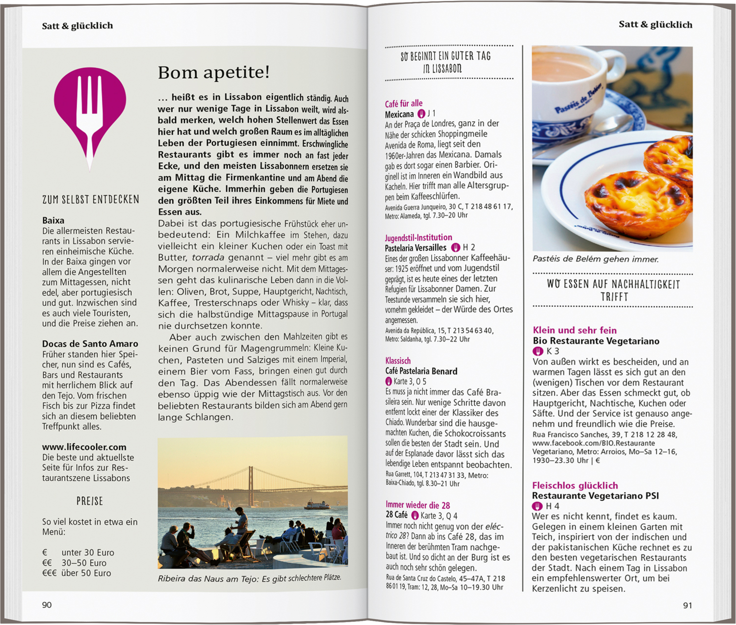In eigenen Kapiteln erfahren Sie, wo es sich in fremden Betten gut schläft, wo Sie glücklich satt werden, wohin die Lissabonner zum Stöbern und Entdecken gehen und wohin es sie zieht, wenn die Nacht beginnt.