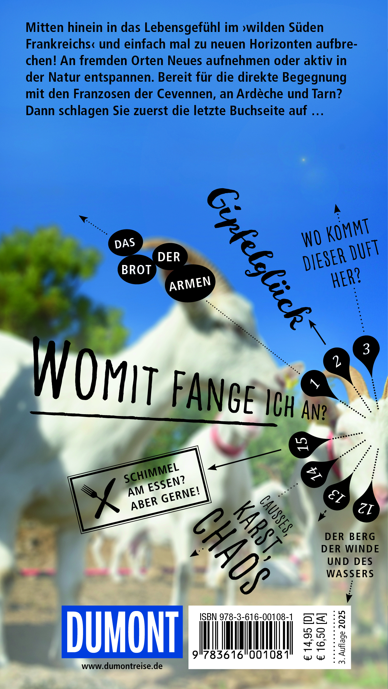 Mit den 15 »Direktkapiteln« des Reiseführers von Gabriele Kalmbach können Sie sich zwanglos unter die Franzosen mischen, direkt in das Lebensgefühl im mediterranen Süden eintauchen, aktiv in der Natur entspannen und die Highlights kennenlernen: Esskastanienwälder, Lavendelfelder und Weinberge, Aussichtsgipfel und Tropfsteinhöhlen, grandiose Schluchten und weite Hochebenen, malerische Bergdörfer und mittelalterliche Städtchen, bunte Märkte.