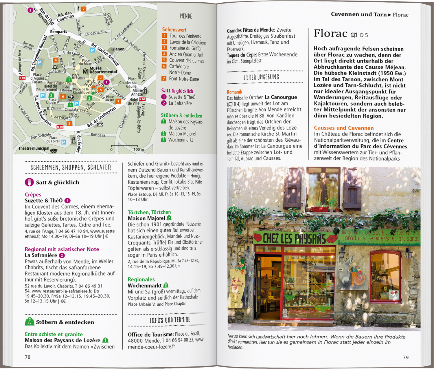 Dank vieler Tipps und Adressen erfahren Sie, wo es sich in fremden Betten gut schläft, wo Sie glücklich satt werden, wohin die Menschen an Ardèche und Tarn zum Stöbern und Entdecken gehen und wohin es sie zieht, wenn die Nacht beginnt.