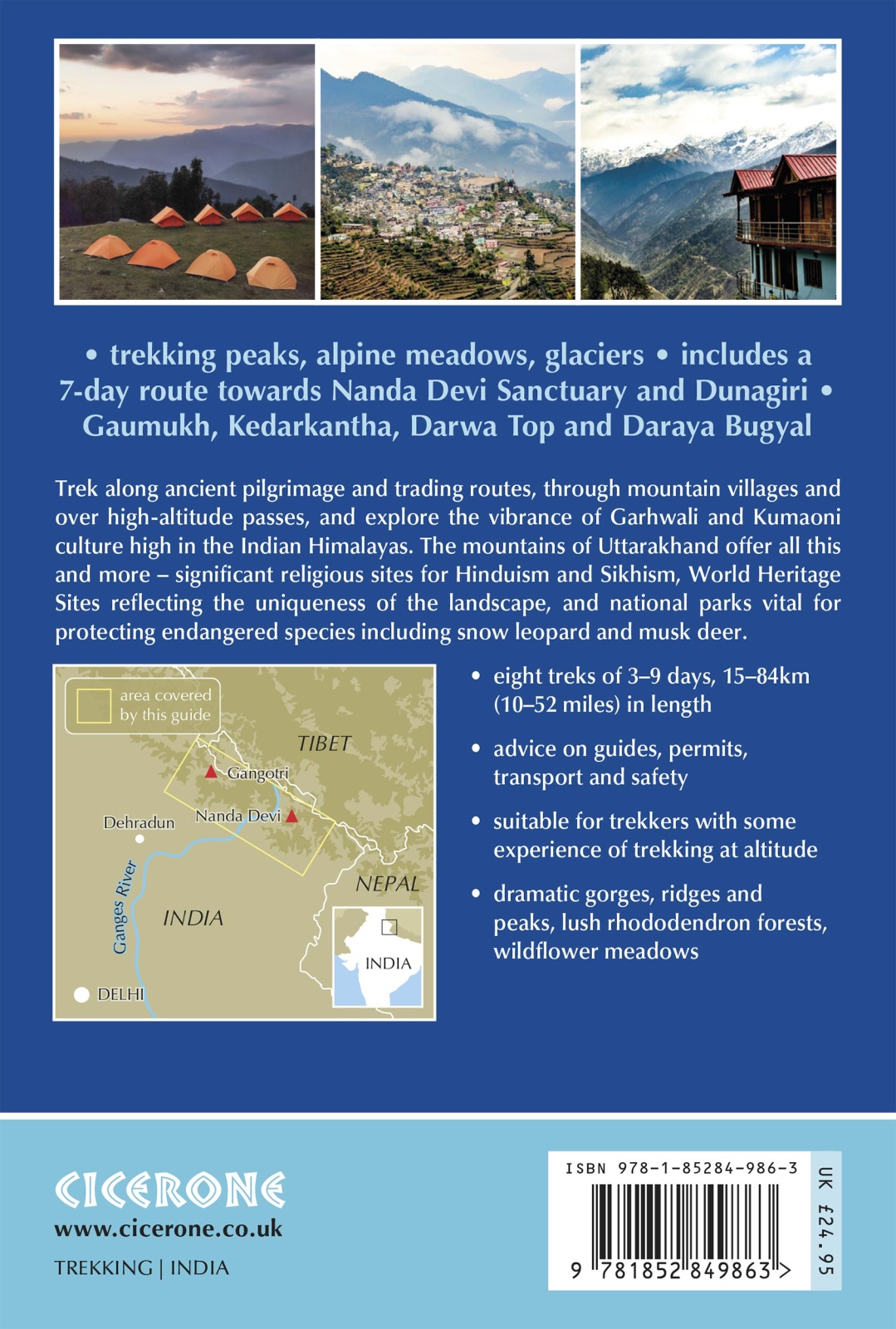 A guidebook to trekking in the Uttarakhand region of the Indian Himalaya. These 8 guided routes are graded according to difficulty and include forest trails, gorge walks, mountain passes, high-altitude summits and glaciers.