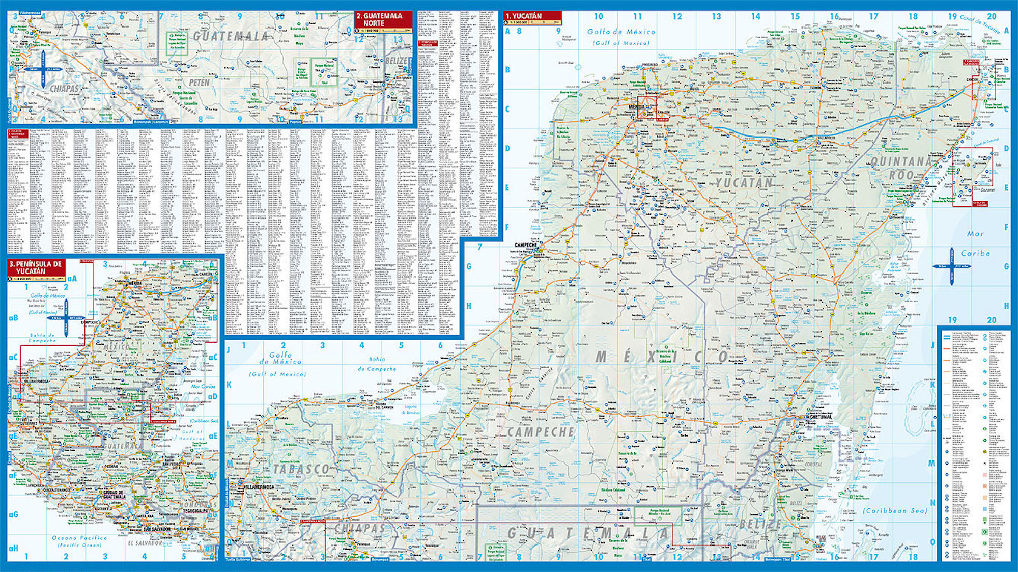 Unsere folienbeschichtete und gefaltete Borch Map von Yukatan in der 8. Auflage beinhaltet: Yukatan 1:1 000 000, Guatemala Nord 1:1 000 000, die Halbinsel von Yukatan 1:4 000 000, Campeche 1:10 000, Mérida Zentrum 1:10 000, Mérida 1:100 000, Cancún & Isla Mujeres 1:100 000, Palenque 1:5 000, Tulúm 1:3 750, Tikal 1:6 200, Uxmal 1:5 500, Chichén-Itzá 1:6 500, Isla de Cozumel 1:250 000 und eine administrative Übersichtskarte von Mexiko mit Zeitzonen. Borch Maps beinhalten eine Vielzahl interessanter und nützlicher Informationen, detailreiche und benutzerfreundliche Kartographie, aber auch Statistiken, Umrechnungstabellen, Klimadiagramme und zahlreiche Übersichtskarten, die eine Borch Map zu einem exzellenten Reisebegleiter machen. Kartenformat (offen): 880 x 494 mm.