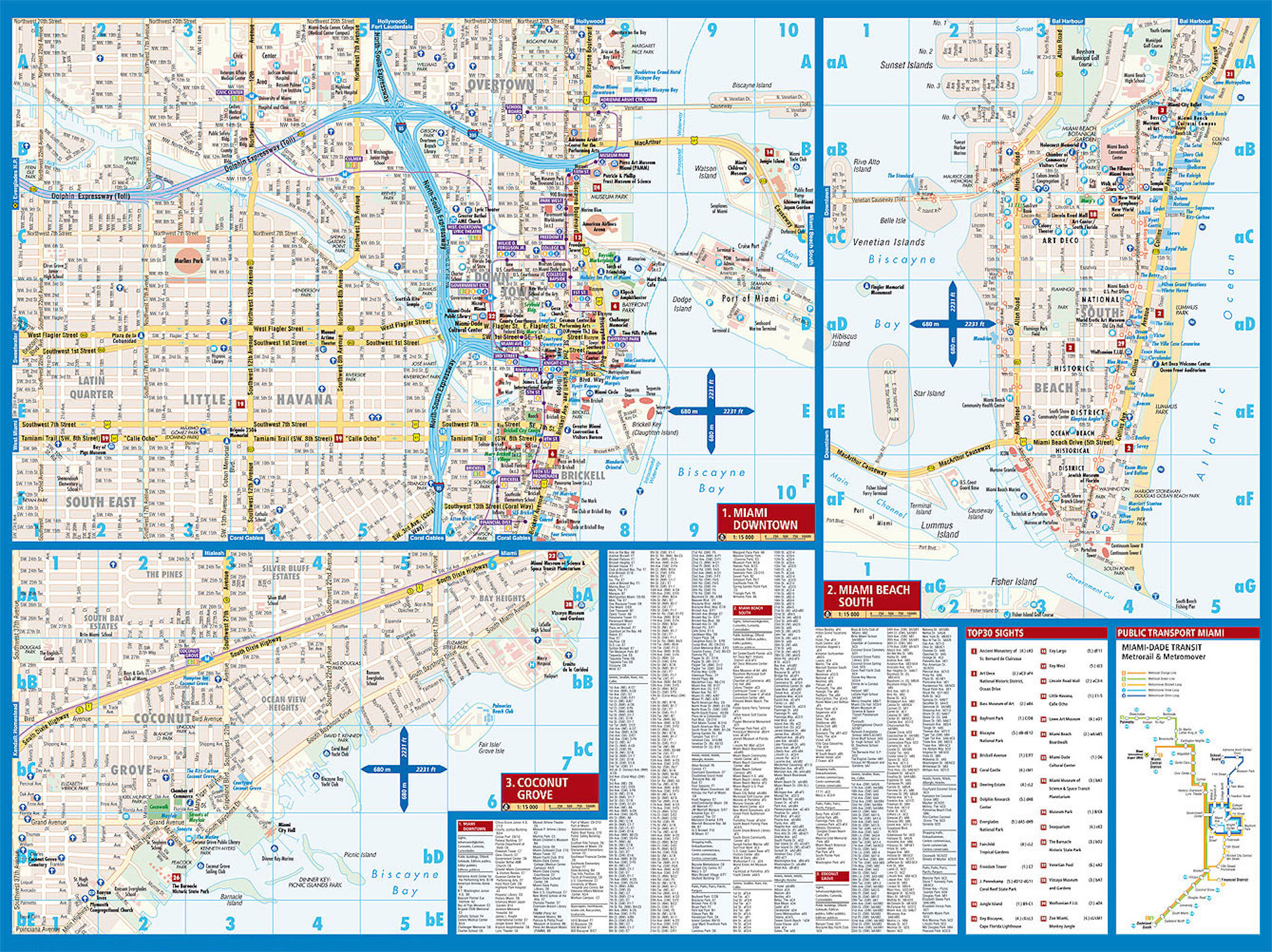 Unsere folienbeschichtete und gefaltete Borch Map von Miami in der 12. Auflage beinhaltet: Miami Stadtzentrum 1:15 000, Miami Beach Süd 1:15 000, Coconut Grove 1:15 000, Großraum Miami 1:350 000, Florida Süd 1:500 000, Coral Gables 1:30 000, das öffentliche Verkehrsnetz und eine administrative Übersichtskarte der USA mit Zeitzonen. Borch Maps beinhalten eine Vielzahl interessanter und nützlicher Informationen wie Top Sights, Museen, Monumente, Märkte und viele weitere Sehenswürdigkeiten, aber auch Statistiken, Umrechnungstabellen, Klimadiagramme und viele detailreiche Übersichtskarten, die eine Borch Map zu einem exzellenten Reisebegleiter machen. Kartenformat (offen): 660 x 494 mm.