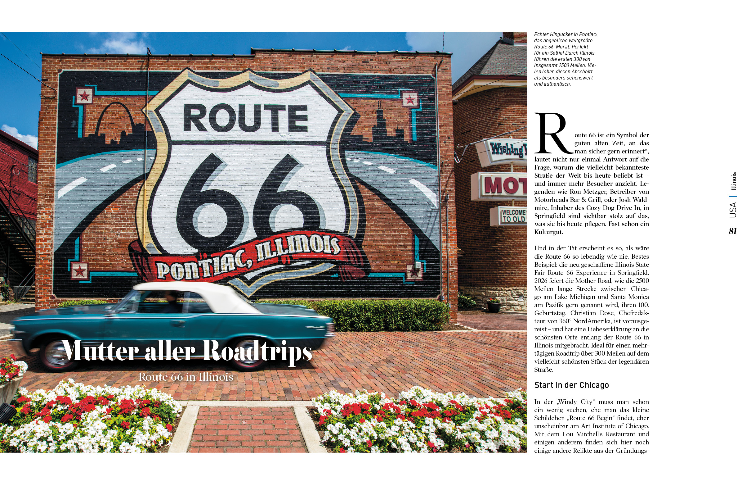 Nach den Sommermonaten als beliebteste Zeit für einen Trip nach Kanada oder in die USA steuern wir nun auf wohl die schönste Reisezeit für Nordamerika zu, wenn im Herbst die Bäume farbenfroh leuchten und sich die Blätter verfärben. Für die Fall Foliage, oft auch als Indian Summer bezeichnet, sind vor allem die Staaten im Osten des Kontinents bekannt.Aber auch in anderen Landesteilen lässt sich die bunte Vielfalt bewundern. Mehrere herausragende Herbstwanderungen in den kanadischen Rocky Mountains empfiehlt Jörg Michel in seiner Reportage. Verena Wolff war an den Great Lakes für uns unterwegs, während Ole Helmhausen den Herbst in Nova Scotia erlebt hat. Ebenfalls aus Kanada berichten Aaron und Achill Moser: Von einem traditionellen PowWow in Québec und den Nation Lakes in British Columbia, während Wolfgang Opel eine charmante Insel in New Brunswick portraitiert. Unterdessen haben die Waldbrände in der Stadt Jasper und im gleichnamigen Nationalpark schwerste Schäden angerichtet, tausende Anwohner und Urlauber mussten evakuiert werden. Einen aktuellen Überblick dazu finden Sie auf den Seiten 42 und 43.Die USA indessen bereiten sich gleich auf mehrere bedeutende Jahrestage vor: 2026 wird die Nation 250 Jahre alt, und im gleichen Jahr feiert die legendäre Route 66 ihr 100-jähriges Bestehen. Mit Illinois hat Christian Dose den vielleicht schönsten Abschnitt erkundet und eine Liebeserklärung an die Mutter aller Roadtrips mitgebracht. Dass Kentucky mehr als nur köstlichen Bourbon zu bieten hat, lesen Sie in "48 Stunden in Louisville" ab Seite 92. South Dakota ist dank des monumentalen Mount Rushmore weithin bekannt - und hat noch viel mehr zu bieten: bizarre Landschaften, viel Wildlife und historische Westernstädte. Ebenfalls ein Bundesstaat und Reiseziel abseits der üblichen Routen: Oregon. Und dank Olympia aktuell in aller Munde - Los Angeles, in vier Jahren erneut Ausrichter des weltweit größten Sportevents. Sabine Loeprick stellt Ihnen die schmucke Innenstadt vor.
