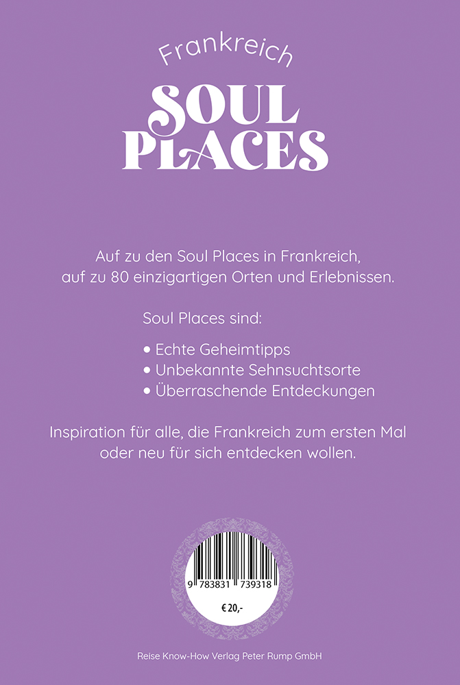 Autor Markus Mörsdorf hat 80 Soul Places in Frankreich aufgespürt, die das Zeug zu neuen Glücksorten haben. Er führt zu den südfranzösischen Alpen, unter den tiefblauen Himmel der Provence und an die mystische Küstenlandschaft der Bretagne, an Orte, wo die Möwen um die Wette kreischen oder der Duft frischer Galettes um die Nasen weht, und findet Antworten für alle, die auf der Suche nach der wahren Seele Frankreichs sind.