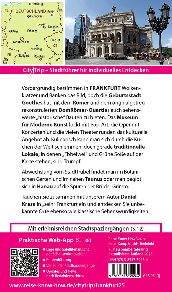 | Schlagworte | Bankenviertel • Deutschland • Die Buddenbrooks • Eintracht Frankfurt • Europäische Zentralbank • Frankfurt am Main • Frankfurt am Main Reiseführer • Frankfurter Buchmesse • Frankfurt erleben • Frankfurt Geschenk • Frankfurt Stadtplan • Großer Feldberg • Hanau • Hessen • Kronberg • Mainhattan • Messe Frankfurt • Odenwald • Oder • Reiseführer Frankfurt • Rheingau • Rhein-Main • Rhein-Main-Gebiet • Römer • Sachsenhausen • Spessart • Stadtrundgang • Stadtspaziergänge • Taunus • Vogelsberg |
