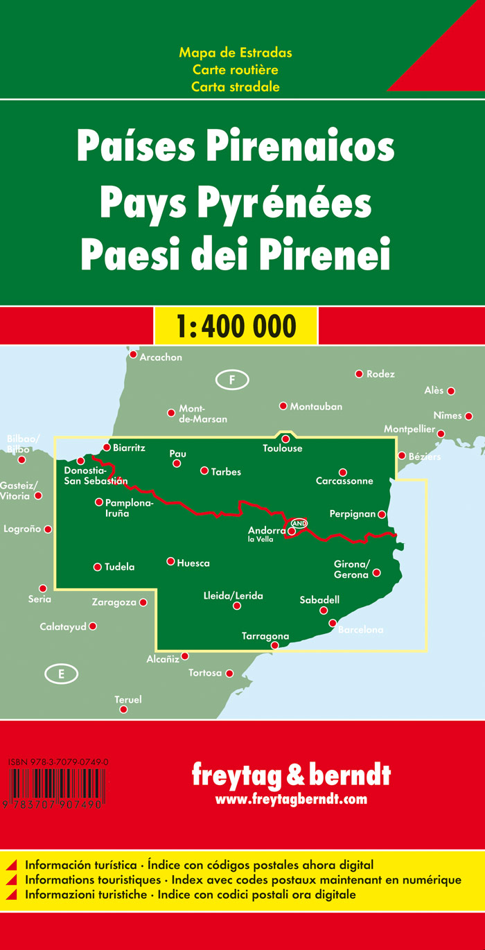 Mit der Straßenkarte Pyrenäenländer im Maßstab 1:400.000 finden sich Urlauber die mit Auto, Motorrad oder Wohnwagen unterwegs sind bestens zurecht. Das weit verzweigte Straßennetz ist exakt abgebildet, Entfernungen und viele Ausflugsziele sind in der Karte eingezeichnet.