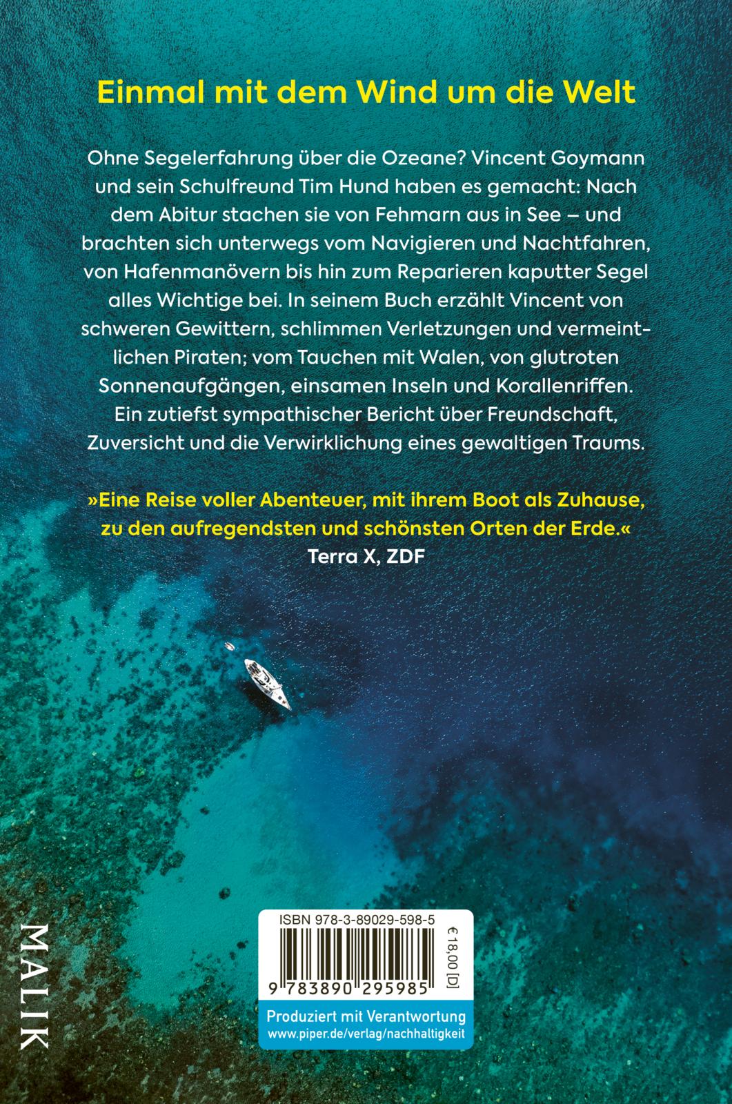 Über 100.000 Menschen haben die ungewöhnliche und mutige Weltreise von den "Segeljungs" Vincent Goymann und Tim Hund auf YouTube und Instagram verfolgt. Nun erzählt Vincent in seinem Buch die Geschichten hinter den Bildern auf ihren Social-Media-Kanälen. Und berichtet von schweren Gewittern und vermeintlichen Piraten; vom Tauchen mit Walen, von glutroten Sonnenaufgängen, einsamen Inseln und Korallenriffen.