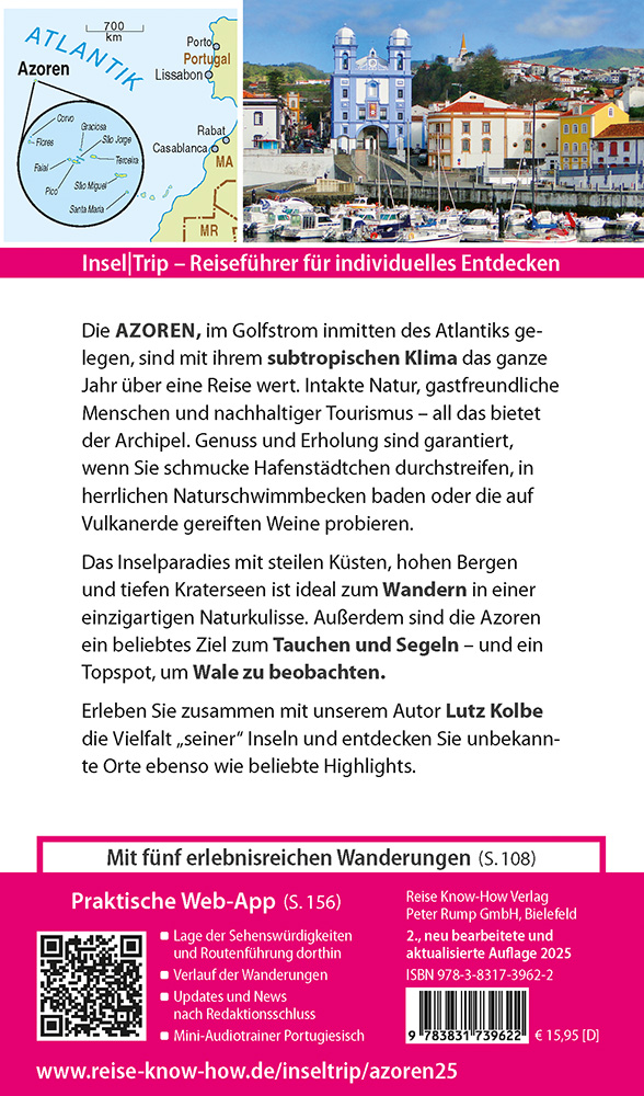 | Schlagworte | Agua de Alto • Angra do Heroísmo • Atlantik • Azoren Karte • Azoren wandern • Corvo • Faial • Flores • Graciosa • Horta • Karte • Kompaktreiseführer • Pico • Ponta Delgada • Portugal • Reiseführer Azoren • Reiseführer Azoren 2025 • Santa Maria • Sao Miguel • Terceira |