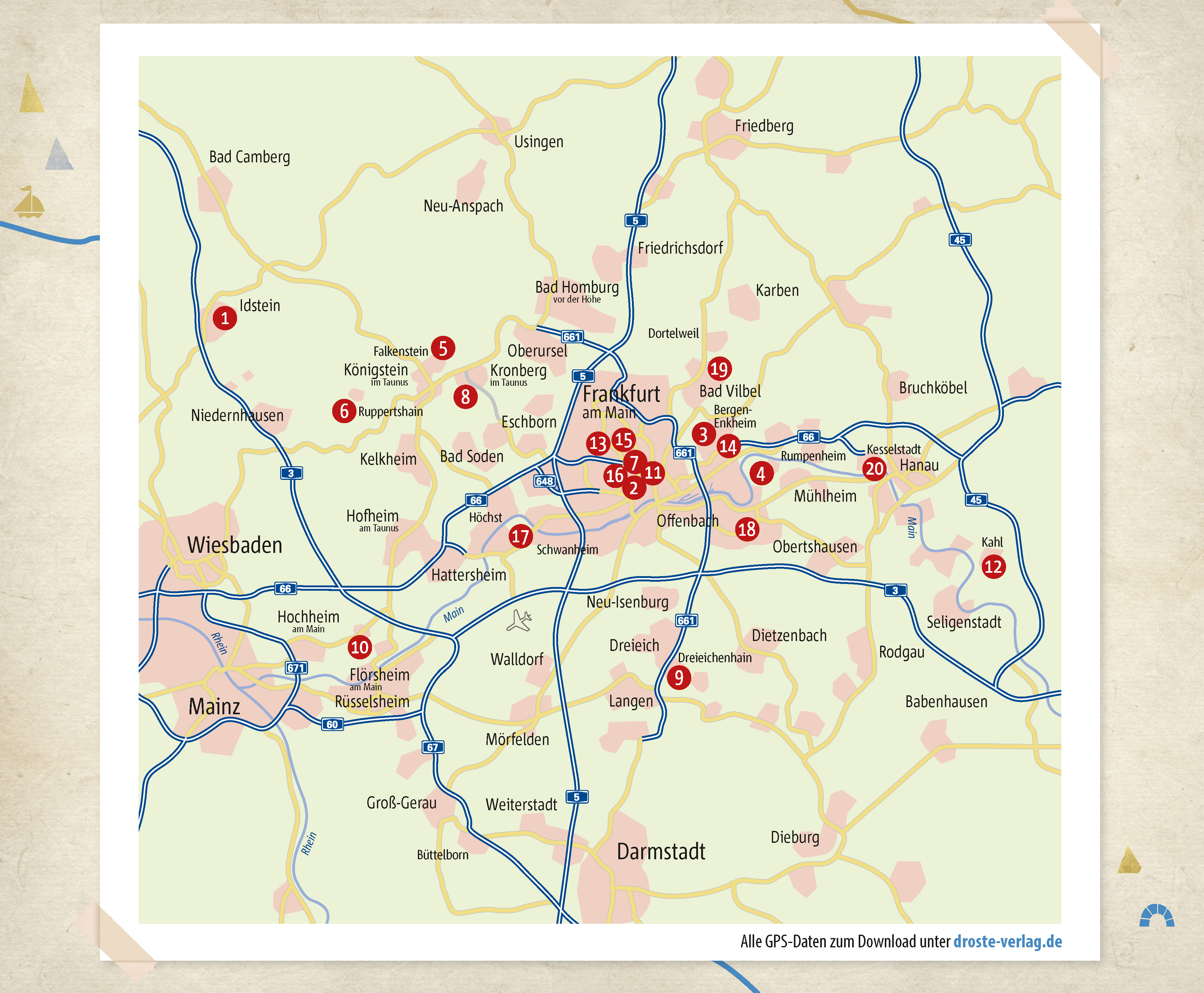 Dem Stadtgeflüster lauschen oder bei einer Landpartie entspannen? In Frankfurt ist beides möglich! Ines Sticklers Lieblingstouren führen zu den versteckten Seiten der Stadt: zu gemütlichen Hinterhöfen, blühenden Oasen und geheimen Quellen. Aus dem grünen Umland schweift der Blick über die glitzernde Skyline und Klöster, Burgen und Dünen lassen das Wanderherz höherschlagen. Mit einem feinen Stöffche im Gerippten macht die Einkehr das Glück perfekt.