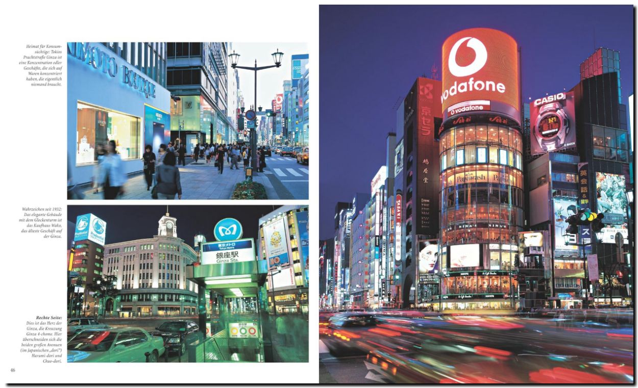 Über 170 Bilder zeigen die Stadt zwischen Gestern, Heute und Übermogen. Fünf Speciels berichten über berühmte Feste, die japanische Küche, das Abenteuer U-Bahn, beliebte Ausflugsziele und das alte traditionelle Tokio.
