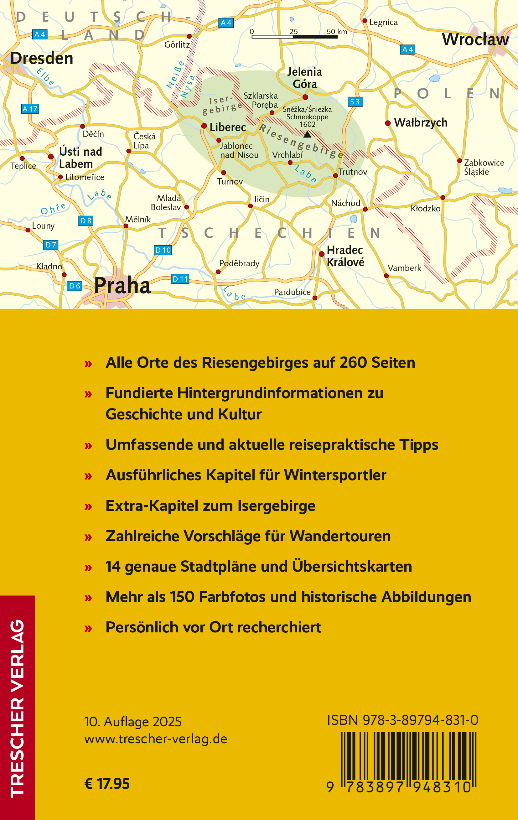 | Schlagworte | Adersbacher Felsen • Anfahrt • Attraktionen • Aussichtspunkte • Bauden • beliebt • bester • Böhmen • Böhmisches Paradies • böhmisches Riesengebirge • Breslau • Elbquelle • Empfehlungen • Europa • Familienurlaub • Ferien • Flug • Fotos • Freundschaftsweg • Geschichte • Görlitz • Harrachsdorf • Hirschberger Tal • Hotel • Isergebirge • Jablonec • Jelenia Gora • Kammwanderung • Karpacz • Karten • Kletterpark • Klima • Kowary • Kurzurlaub • Liberec • mit Kindern • Nationalpark Riesengebirge • Niederschlesien • Osteuropa • Polen • Polnisch • preiswert • Reichenberg • Reiseführer Riesengebirge • Reiseinformationen • Reisetipps • Reisezeit • Reiseziele • Restauranttipps • Riesengebirge • Riesengebirgsmuseum • Rübezahl • Schmiedeberg • Schneekoppe • Schreiberhau • Sehenswert • Sehenswürdigkeiten • Skifahren • Sommerrodelbahn • Spezialitäten • Spindlermühle • Sudeten • Touristeninformation • Trescher-Reiseführer • TRESCHER Reiseführer Riesengebirge 2026 • Trescher Verlag • Trutnov • Tschechien • Tschechisch • Unterkunft • Urlaub • Urlaubsorte • Veranstaltungen • Wandern • Wandertipps • Wanderurlaub • Wasserfälle • Wellness • Wintersport • Zackenbahn |