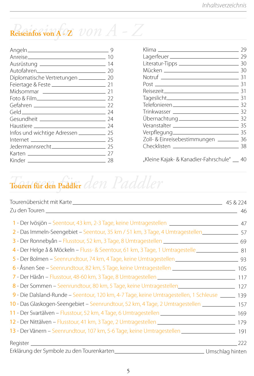 13 Kanutouren mit Tourenkarte mit rund 870 Paddelkilometern. Ivösjön, Immeln, Ronnebyån, Helge å, Bolmen, Åsnen, Härån, Sommen, Dalsland (Stora Le & Lelång), Glaskogen, Svartälven, Nittälven, Vänern· Reiseinfos von A-Z· Sehenswürdigkeiten & sonstige Aktivitäten · Tipps zu Wanderungen, Radtouren & Sehenswürdigkeiten· Kultur- & Naturhistorisches· Infos zur Tourenplanung· farbige Kartenskizzen zu jeder Tour· ausführliche Tourenbeschreibung· Tages- und Mehrtagestouren· Etappenvorschläge & Übernachtungsmöglichkeiten· Einsetz-, Aussetz- & Umtragestellen sowie "zurück zum Pkw"· Übersicht über Kanuverleiher & Kanuzentralen· Karten- und Literaturtipps· Illustrierte Kanufahrschule· Tipps zum Kanuwandern· wichtige Adressen· Register