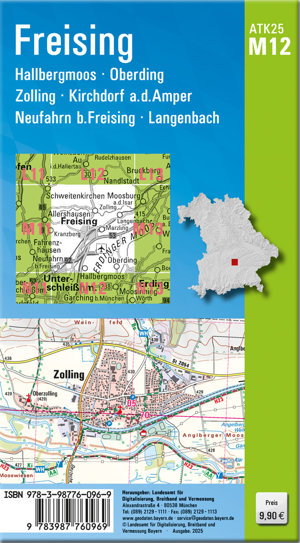 Wer es genau wissen will, greift zur ATK25. Diese Kartenserie im Maßstab 1:25000 bildet mit ihrer detaillierten Darstellung das komplette Verkehrsnetz mit allen Straßen und Wegen ab.237 Einzelblätter stellen Bayern flächendeckend dar. Ein Kartenblatt umfasst ca. 21 km x 22 km.Was bietet die ATK25?- individuelle Freizeitgestaltung mit allen ausgeschilderten Wander- und Radwanderwegen- sichere Orientierung auch abseits der markierten Routen- umfangreiches Spektrum an Freizeiteinrichtungen und Sehenswürdigkeiten- anschauliche Wiedergabe der GeländeformenKartenblatt ATK25-M12 Freising:REGION: Oberbayern, Hallertau, Erdinger MoosORTE: Freising, Hallbergmoos, Oberding, Zolling, Kirchdorf a.d.Amper, Neufahrn b.Freising, Langenbach, Eitting, Marzling, Haag a.d.Amper, Wolfersdorf