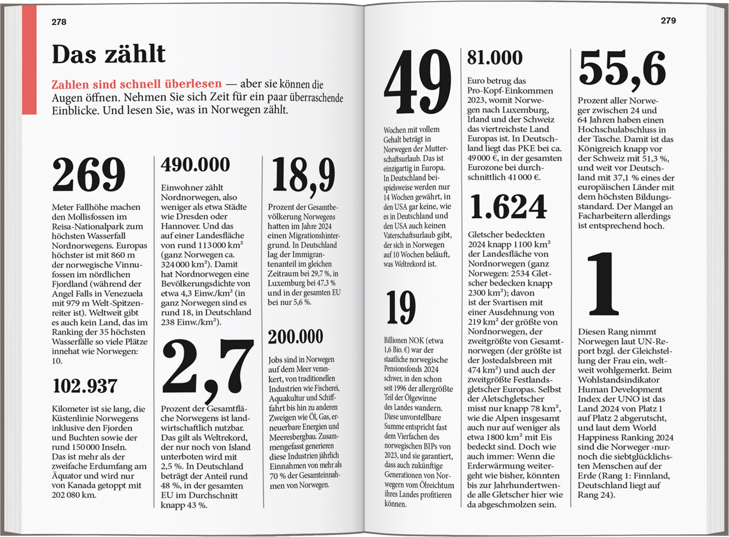 Senkrechtstarter, Überflieger, Querfeldein. Vor Ort - die Kapitel: Trondheim, Nordland, Die Lofoten, Vesterålen und Senja, Tromsø und Umgebung, Das Nordkapland, Die Finnmark. Das Kleingedruckte (Reiseinfos von A bis Z). Das Magazin. Offene Fragen.