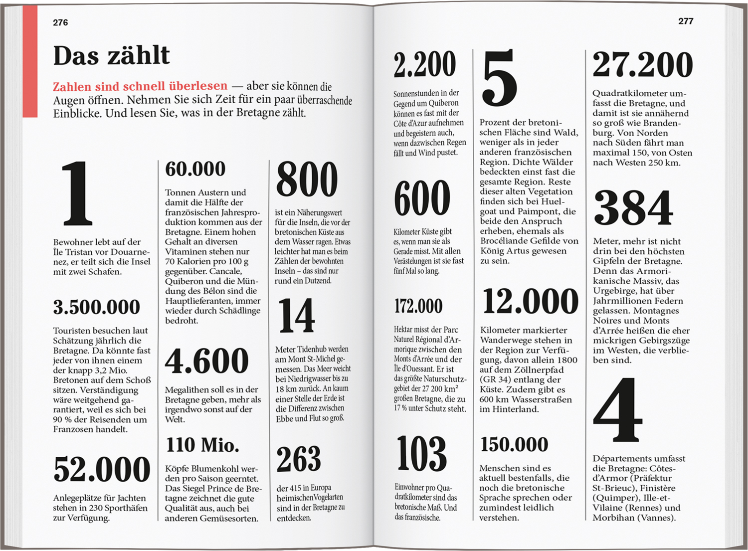 Senkrechtstarter, Überflieger, Querfeldein. Vor Ort - die Kapitel: Rennes und Umgebung, Mont St-Michel und Côte d'Émeraude, Côte de Granit Rose und Côte de Bruyère, Nordwestküste und Hochland, Der Südwesten, La Cornouaille, Quiberon und der Morbihan, Das Kleingedruckte (Reiseinfos von A bis Z). Das Magazin. Offene Fragen.