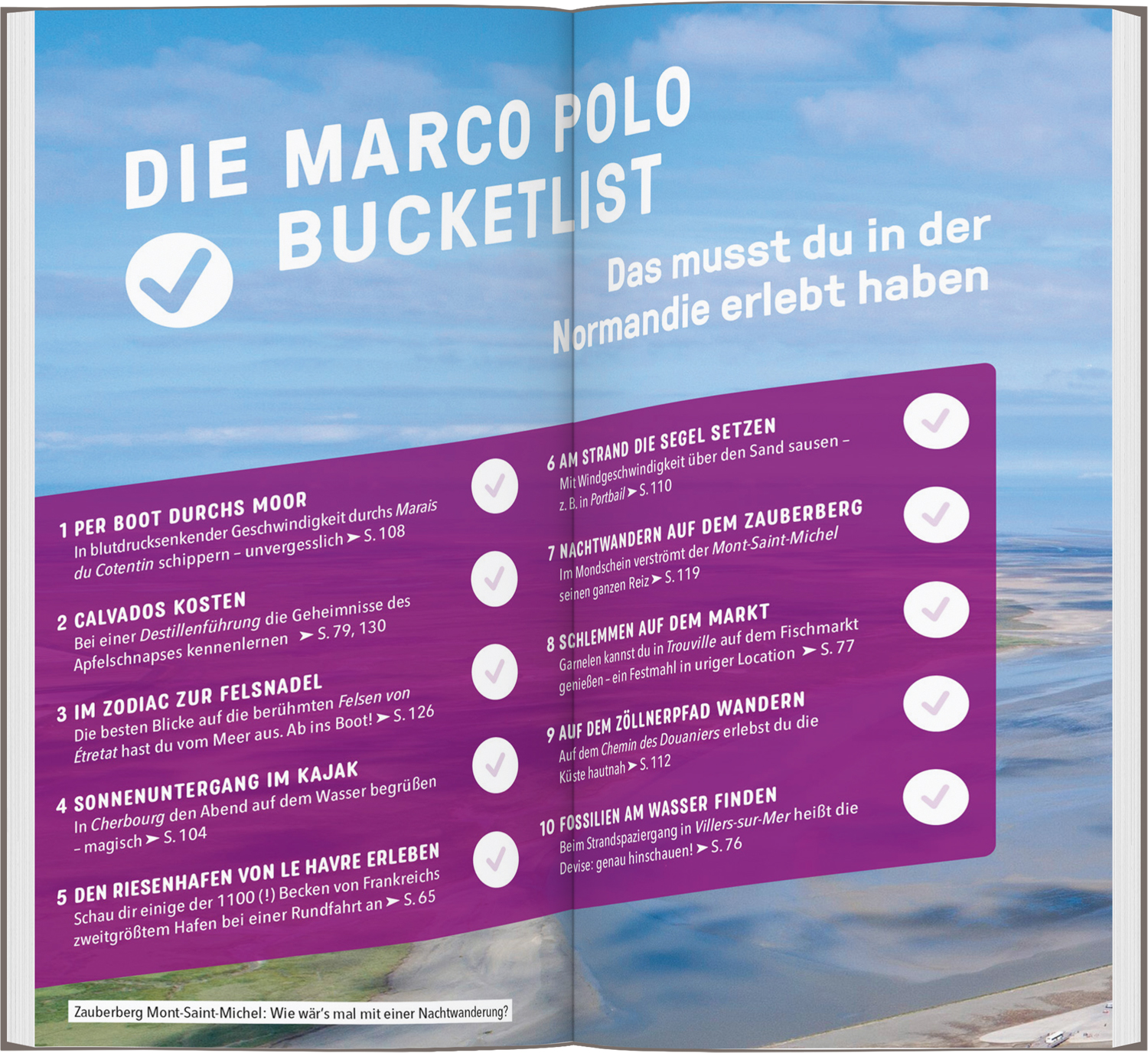 Ob Strandurlaub, Schlemmerreise oder Erlebnistour - stell dir mit dem MARCO POLO Reiseführer für die Normandie genau die Reise zusammen, auf die du Lust hast!