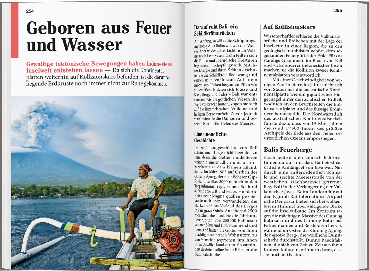 Senkrechtstarter, Überflieger, Querfeldein. Vor Ort - die Kapitel: Südbali, Westbali, Zentralbali, Ostbali, Nordbali, Lombok. Das Kleingedruckte (Reiseinfos von A bis Z). Das Magazin. Offene Fragen.