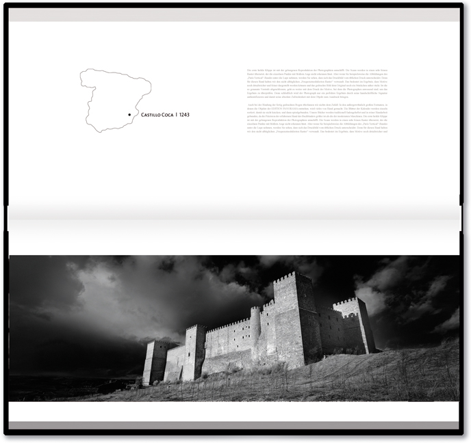 Für sein photographisches Lebensprojekt ist Helmut Hirler viele Male mit dem Motorrad nach Spanien gereist. Selbst noch so entlegene spanische Burgen hat er aufgespürt, um sie mit seiner einmaligen Fähigkeit für perfekte Kompositionen zu porträtieren. Von erhaltenen und wieder restaurierten, bis zu fast komplett zerfallenen Castillos ist die gesamte Bandbreite der spanischen Burgen der letzten tausend Jahre zu sehen.