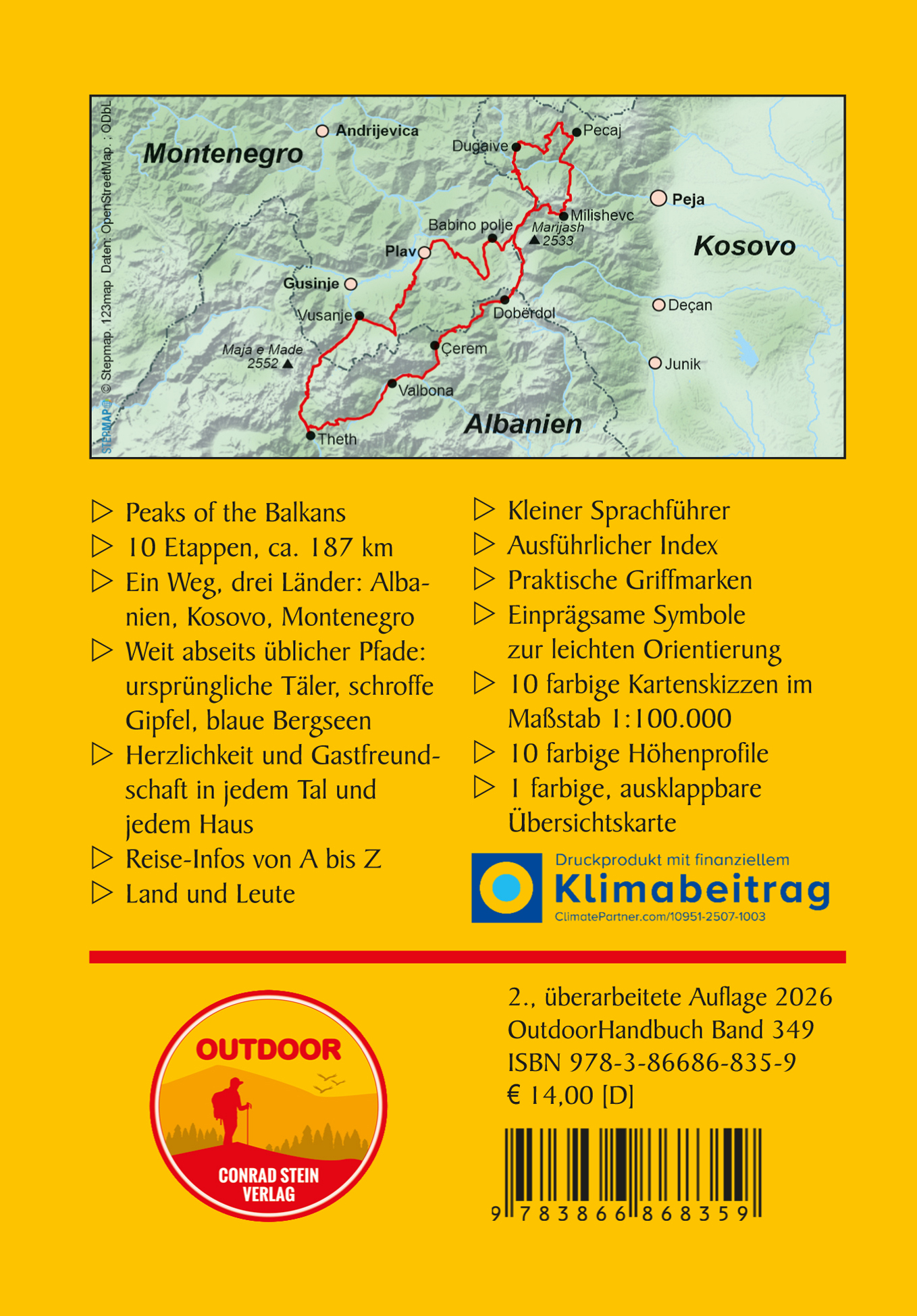 | Schlagworte | Albanien • Balkan • Europäische Fernwanderwege • fernwandern europa • Fernwanderung Albanien • Fernwanderung Balkan • Fernwanderung Kosovo • Fernwanderung Montenegro • Fernwanderung Peaks of the Balkans • fernwanderung reiseführer • Fernwanderweg • fernwanderwege Balkan • Kosovo • mehrtagestour Balkan • Montenegro • outdoor wanderführer • outdoor wanderführer stein verlag • Peaks of the Balkans • stein conrad verlag • Tourenplanung • trail Balkan • Trekking Balkan • Wandern Balkan • wandern im Balkan • wandern im Kosovo • wandern in Albanien • wandern in Montenegro • wanderroute Balkan • wanderwege Balkan • wanderwege europa • Wegbeschreibung • weitwanderwege europa |