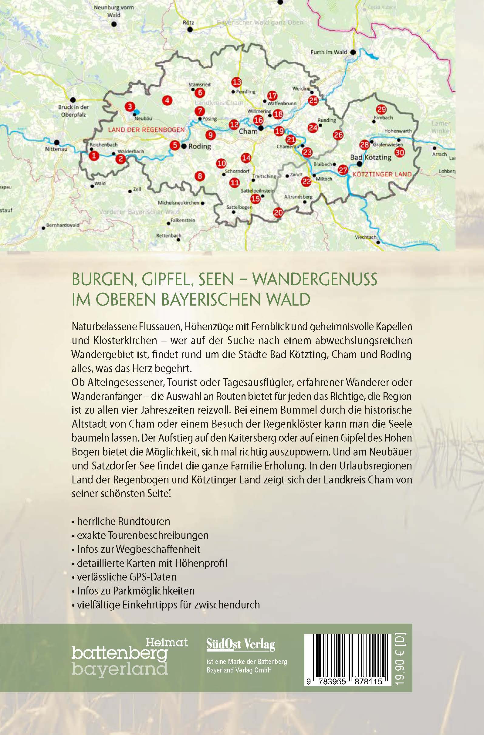 Burgen, Gipfel, Seen - Wandergenuss im Oberen Bayerischen Wald!Naturbelassene Flussauen, Höhenzüge mit Fernblick und geheimnisvolle Kapellen und Klosterkirchen - wer auf der Suche nacheinem abwechslungsreichen Wandergebiet ist, findet rund um die Städte Bad Kötzting, Cham und Roding alles, was das Herz begehrt. Ob Alteingesessener, Tourist oder Tagesausflügler, erfahrener Wanderer oder Wanderanfänger - die Auswahl an Routen bietet für jeden das Richtige, die Region ist zu allen vier Jahreszeiten reizvoll. Bei einem Bummel durch die historische Altstadt von Cham oder einem Besuch der Regenklöster kann man die Seele baumeln lassen. Der Aufstieg auf den Kaitersberg oder auf einen Gipfel des Hohen Bogen bietet die Möglichkeit, sich mal richtig auszupowern. Und am Neubäuer und Satzdorfer See findet die ganze Familie Erholung. In den Urlaubsregionen "Land der Regenbogen" und "Kötztinger Land" zeigt sich der Landkreis Cham von seiner schönsten Seite! Dieser Wanderführer bietet Ihnen:- herrliche Rundtouren- exakte Tourenbeschreibungen- Infos zur Wegbeschaffenheit- detaillierte Karten mit Höhenprofil- verlässliche GPS-Daten- Infos zu Parkmöglichkeiten- vielfältige Einkehrtipps für zwischendurch