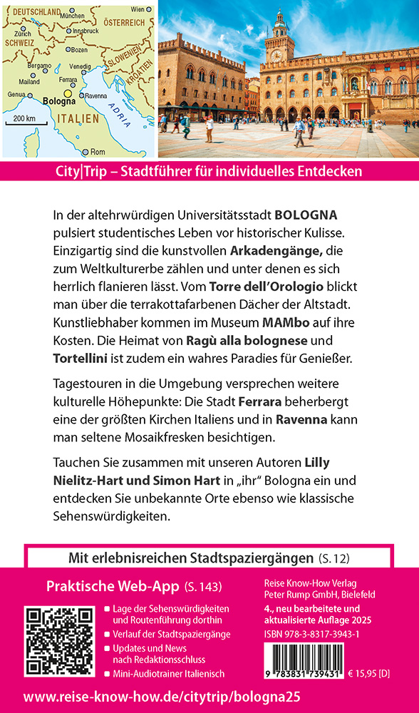 | Schlagworte | App • Bologna Reiseführer 2025 • Bolognese • Due Torri • Emilia-Romagna • Ferrara • Italien • Italienisch • Kurztrip • Norditalien Reiseführer • Ravenna • Reiseführer Bologna • Reiseführer Bologna & Emilia-Romagna • Reiseführer Bologna & Emilia-Romagna • Reiseführer Emilia-Romagna • Stadtführer Bologna • Stadtplan Bologna • Südeuropa • UNESCO City of Music • Universität Bologna |
