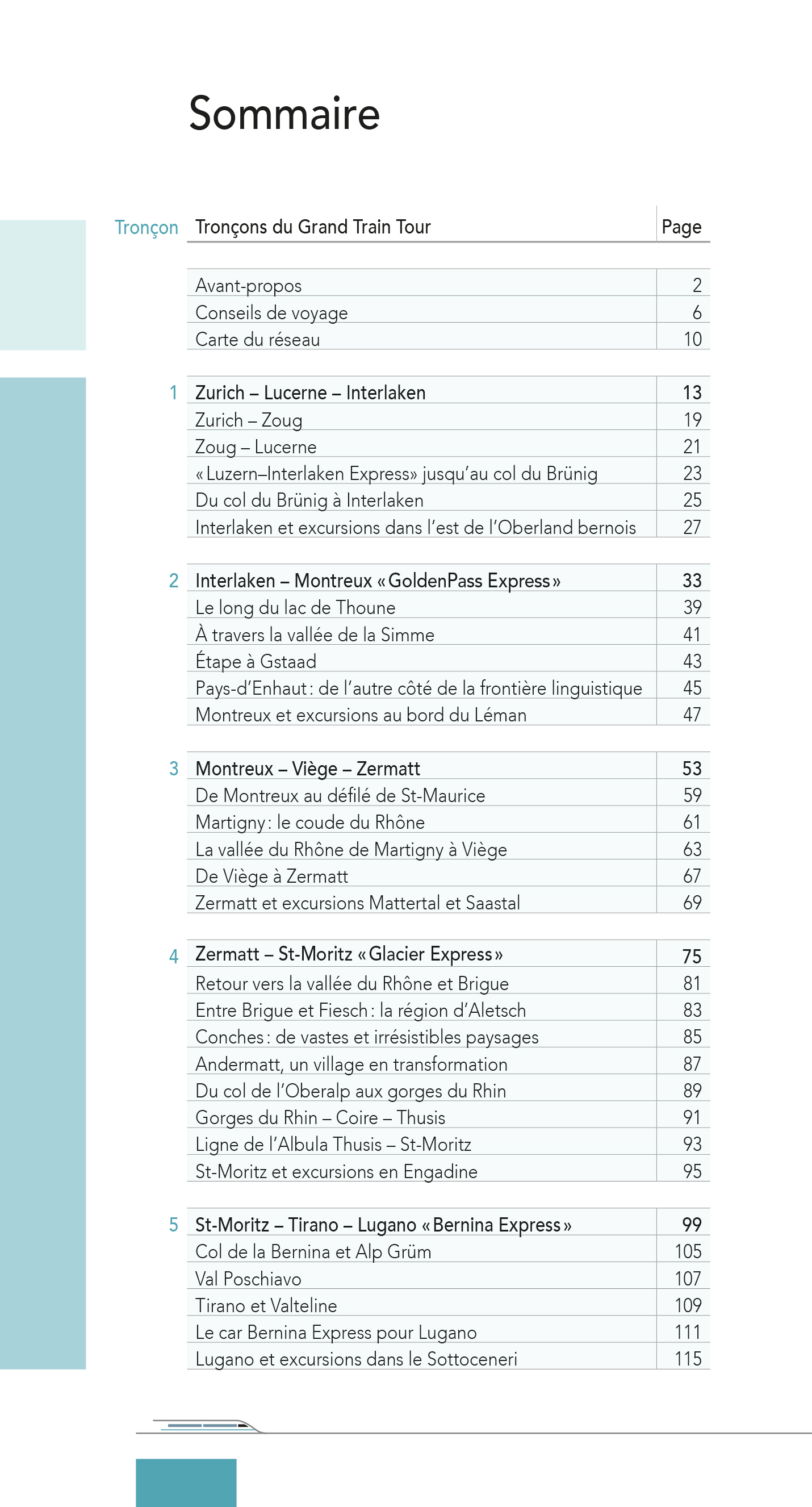 DIE GRAND TRAIN TOUR OF SWITZERLAND führt auf 1280 km über die attraktivsten Bahnstrecken kreuz und quer durch die Schweiz und verbindet die schönsten Panoramazüge und Sehenswürdigkeiten des Landes. Der beliebte Touring Guide Grand Train Tour of Switzerland zu dieser Zug-Rundreise gibt's neu auch auf Französisch und besticht durch unzählige Reisetipps und Hintergrundinformationen zu den einzelnen Strecken. Egal ob nur ein Teil oder die gesamte Grand Train Tour gemacht wird - Mit den Routenkarten, den detaillierten Reiseinformationen, den Sehenswürdigkeiten und Bahn-Besonderheiten je Etappe wird man bestens auf die Reise vorbereitet. Mit