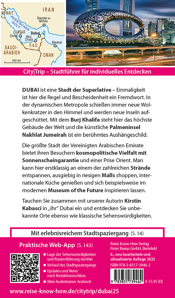 Dazu: kostenlose Web-App für Smartphone, Tablet und PC mit Stadtplan- und Satellitenansichten passend zum Text, Routenführung zu allen beschriebenen Sehenswürdigkeiten, Verlauf des Stadtspaziergangs, seitenbezogenen Updates nach Redaktionsschluss sowie einem Mini-Audiotrainer Arabisch