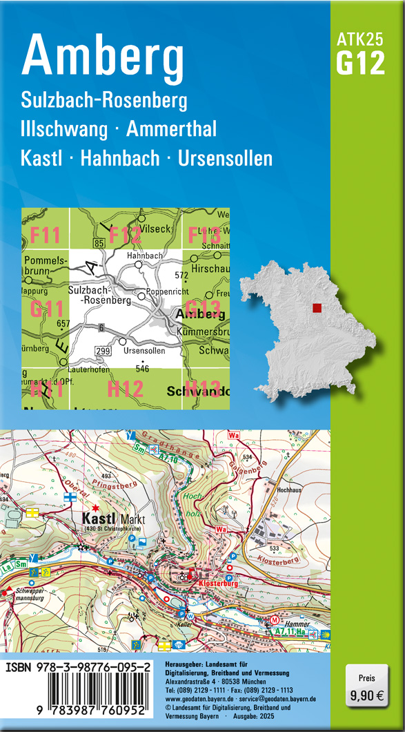 Wer es genau wissen will, greift zur ATK25. Diese Kartenserie im Maßstab 1:25000 bildet mit ihrer detaillierten Darstellung das komplette Verkehrsnetz mit allen Straßen und Wegen ab.237 Einzelblätter stellen Bayern flächendeckend dar. Ein Kartenblatt umfasst ca. 21 km x 22 km.Was bietet die ATK25?- individuelle Freizeitgestaltung mit allen ausgeschilderten Wander- und Radwanderwegen- sichere Orientierung auch abseits der markierten Routen- umfangreiches Spektrum an Freizeiteinrichtungen und Sehenswürdigkeiten- anschauliche Wiedergabe der GeländeformenKartenblatt ATK25-G12 Amberg:REGION: Oberpfalz, Fränkische Alb, HirschwaldORTE: Amberg, Sulzbach-Rosenberg, Illschwang, Ammerthal, Kastl, Hahnbach, Ursensollen, Birgland, Kümmersbruck, Poppenricht