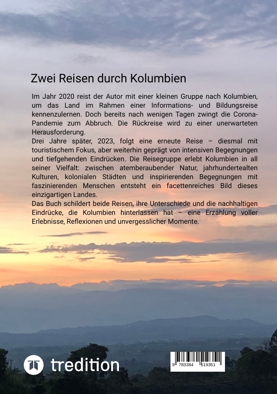 Die für 2020 geplante Informations- und Bildungsreise nach Kolumbien, die in einer kleinen Gruppe stattfinden sollte, musste bereits nach wenigen Tagen aufgrund der aufkommenden Corona-Pandemie abrupt abgebrochen werden. Rückflüge von Bogotá nach Europa waren nicht mehr verfügbar, sodass die Reisenden tagelang auf eine Lösung warten mussten. Schließlich ermöglichte eine glückliche Fügung doch noch die Rückkehr nach Deutschland.Trotz dieses turbulenten Erlebnisses blieb die Faszination für das südamerikanische Land bestehen. So wurde 2023 eine zweite Reise unternommen - eine eindrucksvolle und prägende Erfahrung, die nachhaltige Erinnerungen hinterließ. Eine Reiseerzählung.