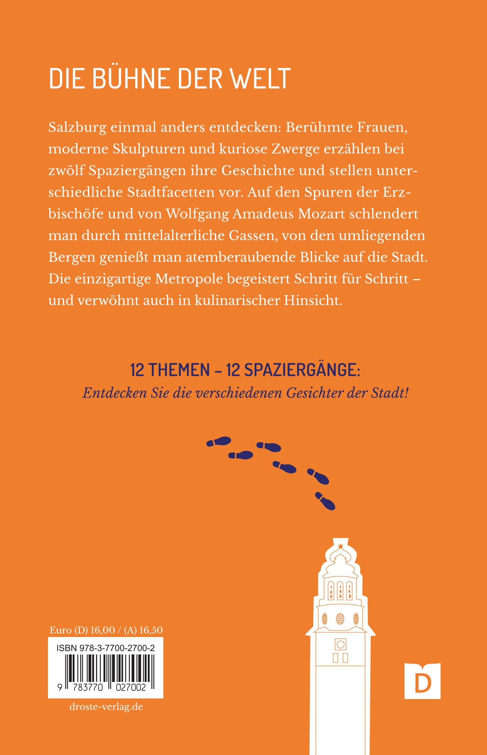 Salzburg einmal anders entdecken: Berühmte Frauen, moderne Skulpturen und kuriose Zwerge erzählen bei zwölf Spaziergängen ihre Geschichte und stellen unterschiedliche Stadtfacetten vor. Auf den Spuren der Erzbischöfe und von Wolfgang Amadeus Mozart schlendert man durch mittelalterliche Gassen, von den umliegenden Bergen genießt man atemberaubende Blicke auf die Stadt. Die einzigartige Metropole begeistert Schritt für Schritt - und verwöhnt auch in kulinarischer Hinsicht.