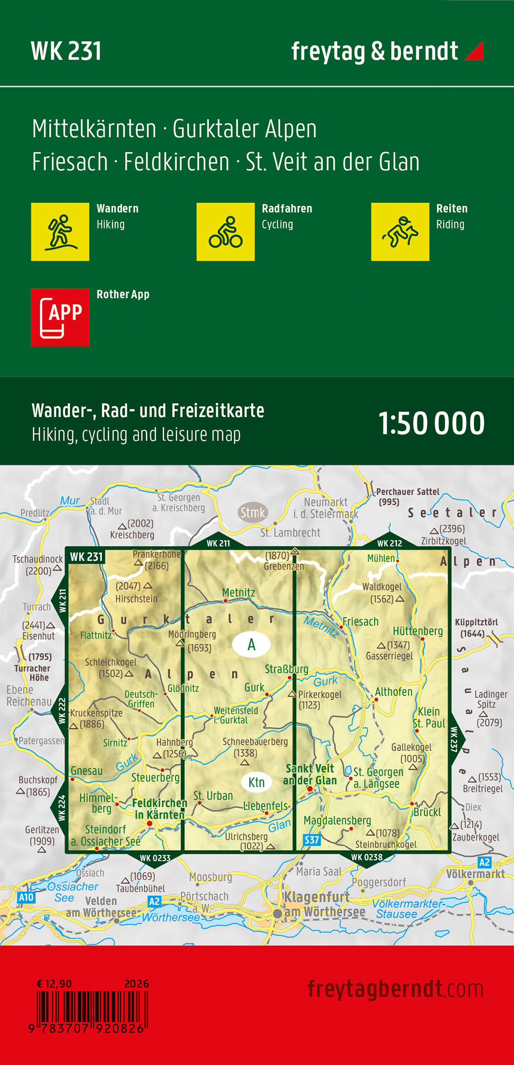 Mittelkärnten, Wander-, Rad- und Freizeitkarte 1:50.000, freytag & berndt, WK 231