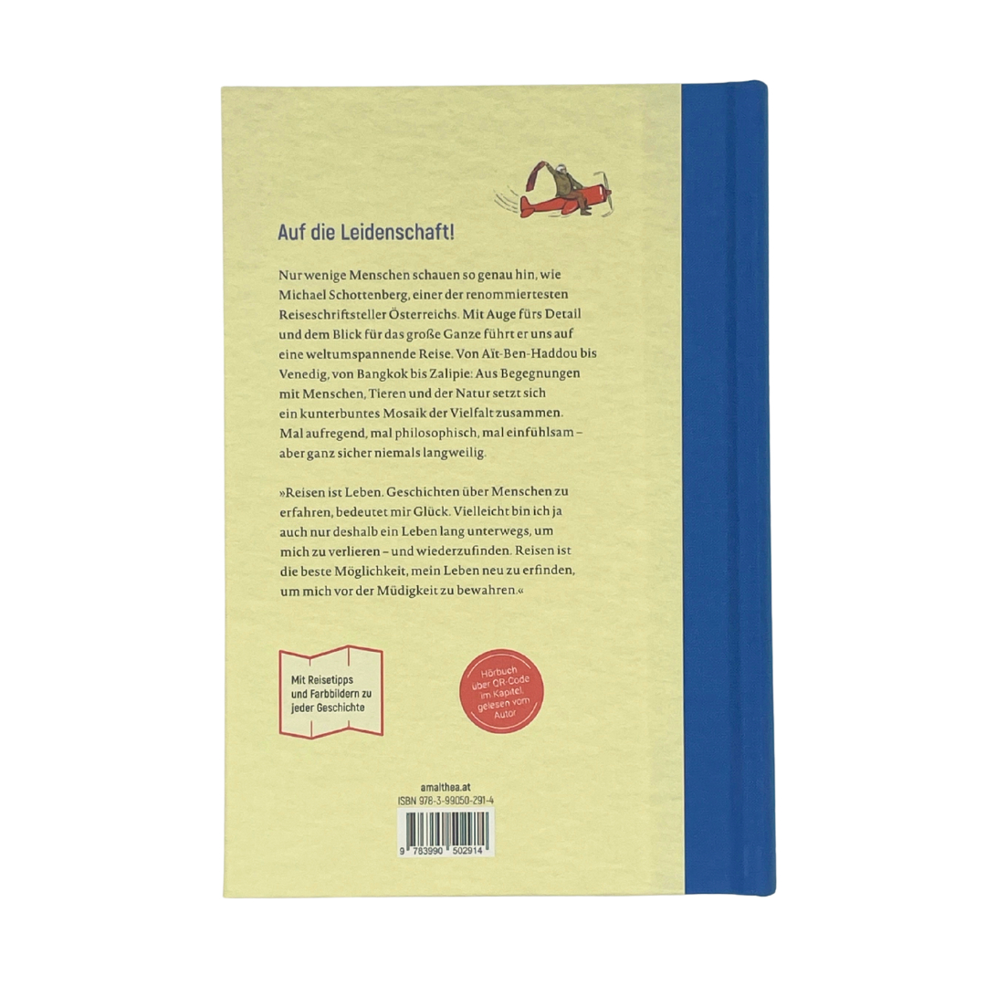 Das musst du gesehen habenDas Leben besteht nun einmal aus scheinbar unbedeutenden Flügelschlägen. Aneinander gefügt ergeben sie das große Ganze. Wie Schmetterlingsjäger sammelt Michael Schottenberg, einer der renommiertesten Reiseschriftsteller Österreichs, auf seinen zahlreichen Reisen Begegnungen mit Menschen und ihren Geschichten aus aller Welt.Von Aït-Ben-Haddou bis Venedig, von Bangkok bis Zalipie und überall dazwischen setzt sich ein wunderbares Mosaik der neuenEindrücke zusammen. So wird die Welt rund um ihn zur Bühne, die der betritt, der zu sehen versteht: Als Summe der Reisen, dieer machte, als Summe der Worte, die er fand.