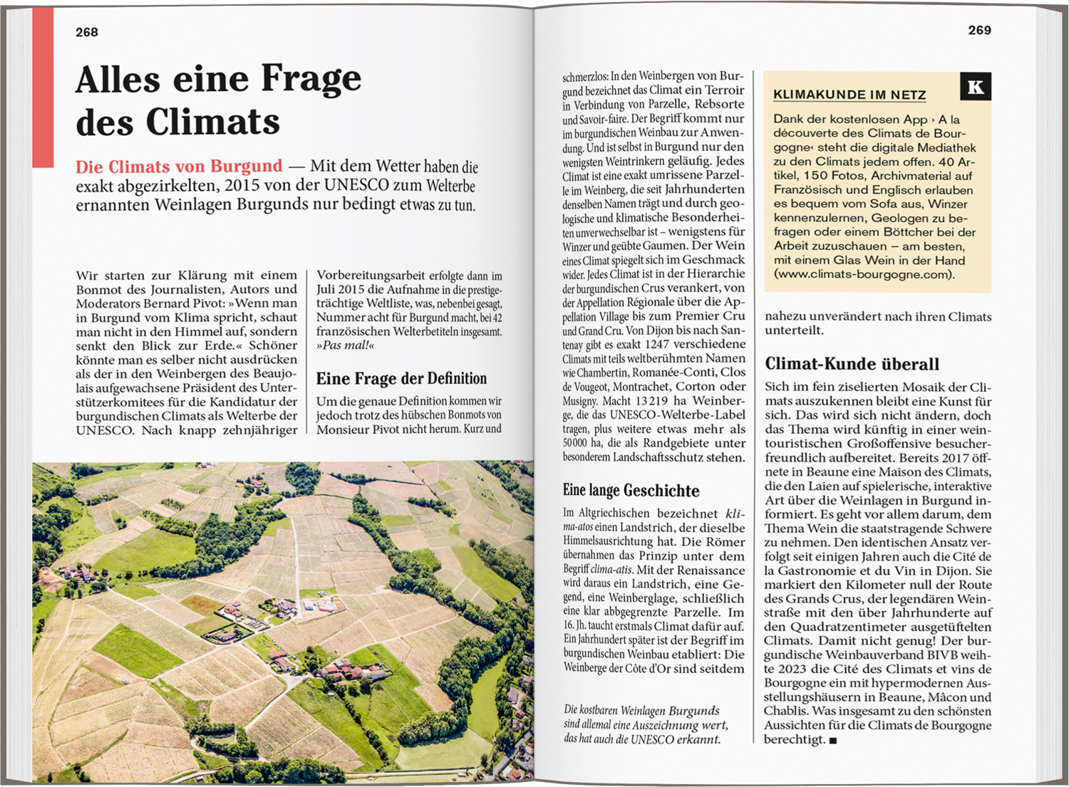 Senkrechtstarter, Überflieger, Querfeldein. Vor Ort - die Kapitel: Dijon und Umgebung; Beaune und Côte d'Or; Saône-Tal und Bresse; Charolais und Brionnais; Autun und der Morvan; Zwischen Loire und Yonne; Chablis, Tonnerrois, Auxois und Seine-Tal. Das Kleingedruckte (Reiseinfos von A bis Z). Das Magazin. Offene Fragen.