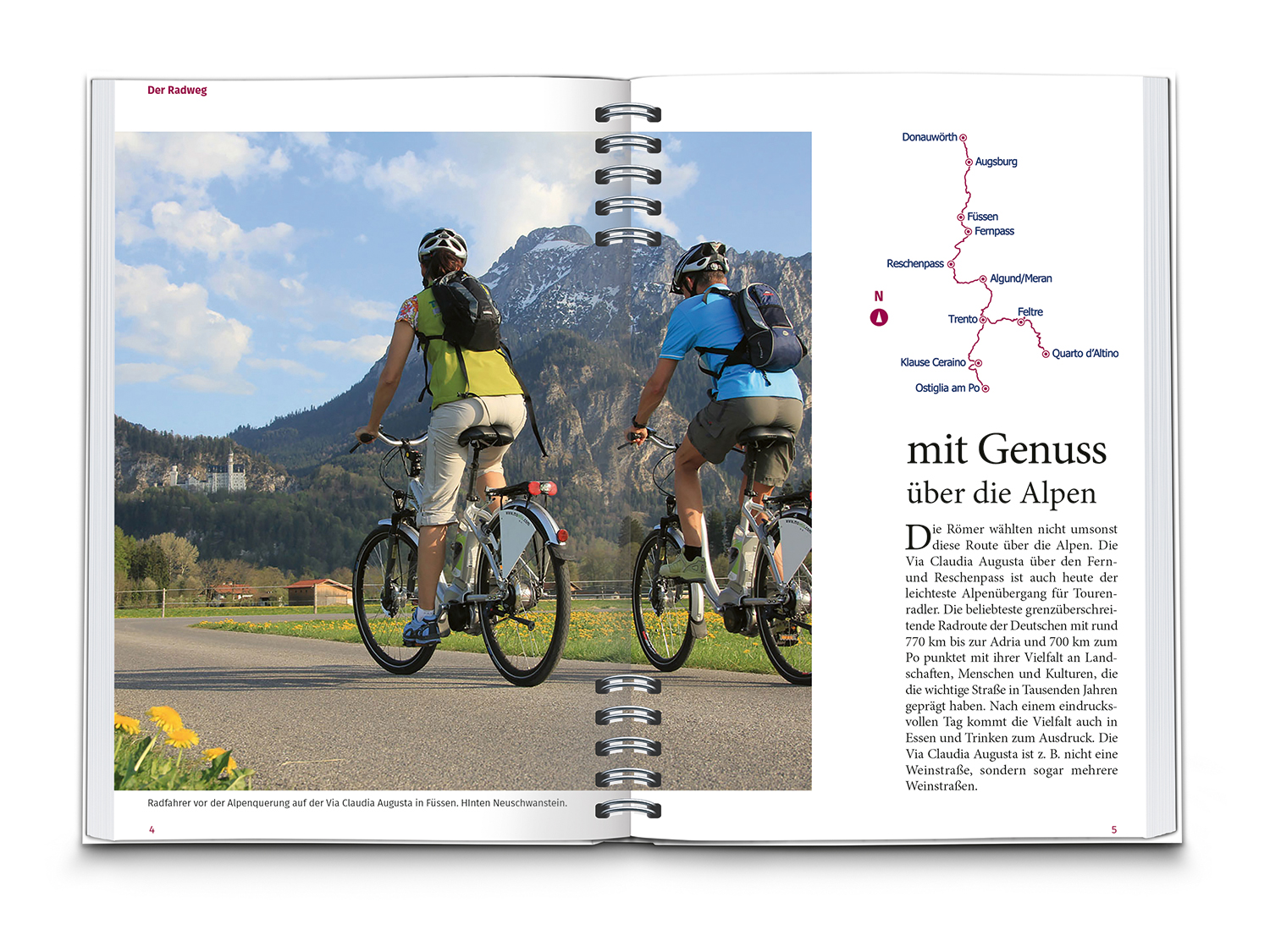 Die perfekte Kombination aus Reiseführer und Radführer für dein unvergessliches Erlebnis auf der Via Claudia Augusta mit einer Alpenüberquerung von der Donau an die Adria oder zum Po. Vorfreude: Der Auftakt zeigt, warum sich jeder Kilometer lohnt und bietet wertvolle Informationen zur Radwegbeschilderung und -qualität. Reiseführer: Wissenswertes, Highlights am Wegesrand und lohnenswerte Schlenker sind sorgfältig recherchiert und charmant beschrieben. So lernt man bereits vor der eigentlichen Tour Land und Leute, Natur und Kultur kennen - die Auszeit beginnt. Radführer: Los gehts! Die genaue Wegbeschreibung hilft gemeinsam mit den Detailkarten des Roadbooks (1:50.000) bei der Orientierung. Den nötigen Überblick bekommt man mit der extra Faltkarte (1:200.000) und, wer will, mit dem GPX-Track.