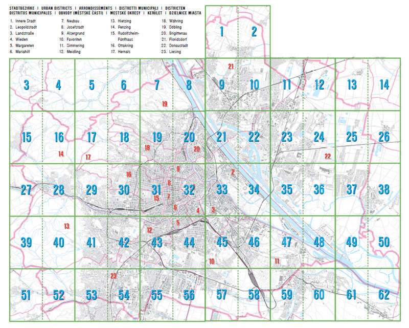 Details: Einbahnen, Hausnummern, Öffentliche Verkehrsmittel, Post, Polizei, Krankenhäuser, Flughafen Wien, Autokarte Großraum;Sprachen: Deutsch Spanisch Englisch Tschechisch Französisch Slowakisch Italienisch Ungarisch Holländisch Polnisch