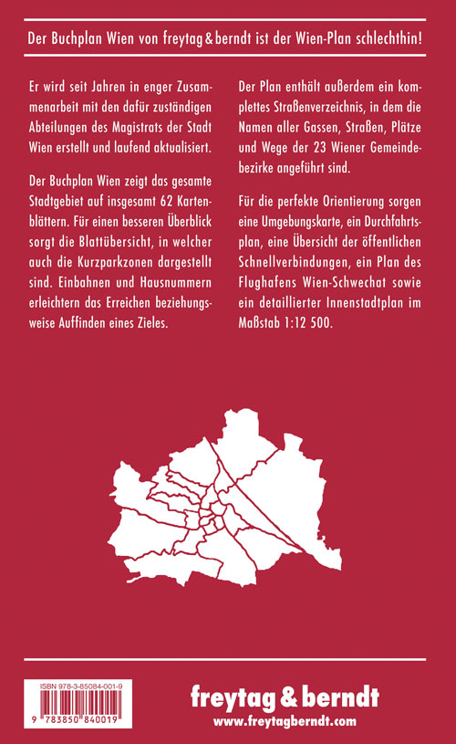 Der Buchplan Wien 1:20.000 besticht durch ein ausgezeichnetes Kartenbild, welches trotz der Fülle an Details sehr gut lesbar ist. Im umfangreichen Index finden Sie jede Adresse. Alle Inhalte werden natürlich regelmäßig aktualisiert.
