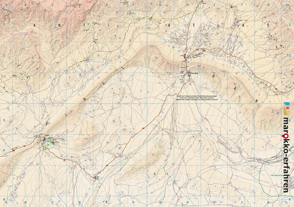 | Schlagworte | Architectural sights • architektonische Sehenswürdigkeiten • art rupestre • Carte • Carte des rues • carte touristique • Curiosités architecturales • Erg Chegaga • Felskunst • Foum Zguid • Jbel Bani • Karte • Lac Iriqui • Landkarte • map • marokko-erfahren • Monuments en pierre • PN d'Iriqui ouest • Road Map • Rock artwork • Steinmonumente • stone monuments • Straßenkarte • Tissint • Touristic map • Touristische Karte |