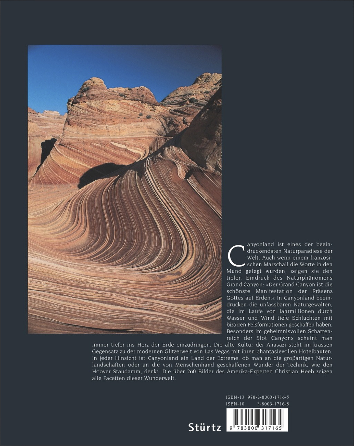 | Schlagworte | Amerika • Antelope Canyon • Arches Naional Park • Bildband • Bryce Canyon • Canyon • Canyonland • Canyonlands National Park • Capitol Reef National Park • Colorado River • Grand Canyon • Grand-Staircase-Escalante National Monument • Havasu Canyon • HC/Reisen/Bildbände/Nordamerika, Mittelamerika • Hoover Dam • Lake Mead • Lake Powell • Las Vegas • Monument Valley • Nationalparks • Paria Canyon • Phoenix • Reisebildband • Santa Fe • Sonora Desert • Taos Pueblo • Tuscon • USA • USA; Bildband • Vermillon Cliffs Wilderness Area • Zion Canyon • Zion National Park |
