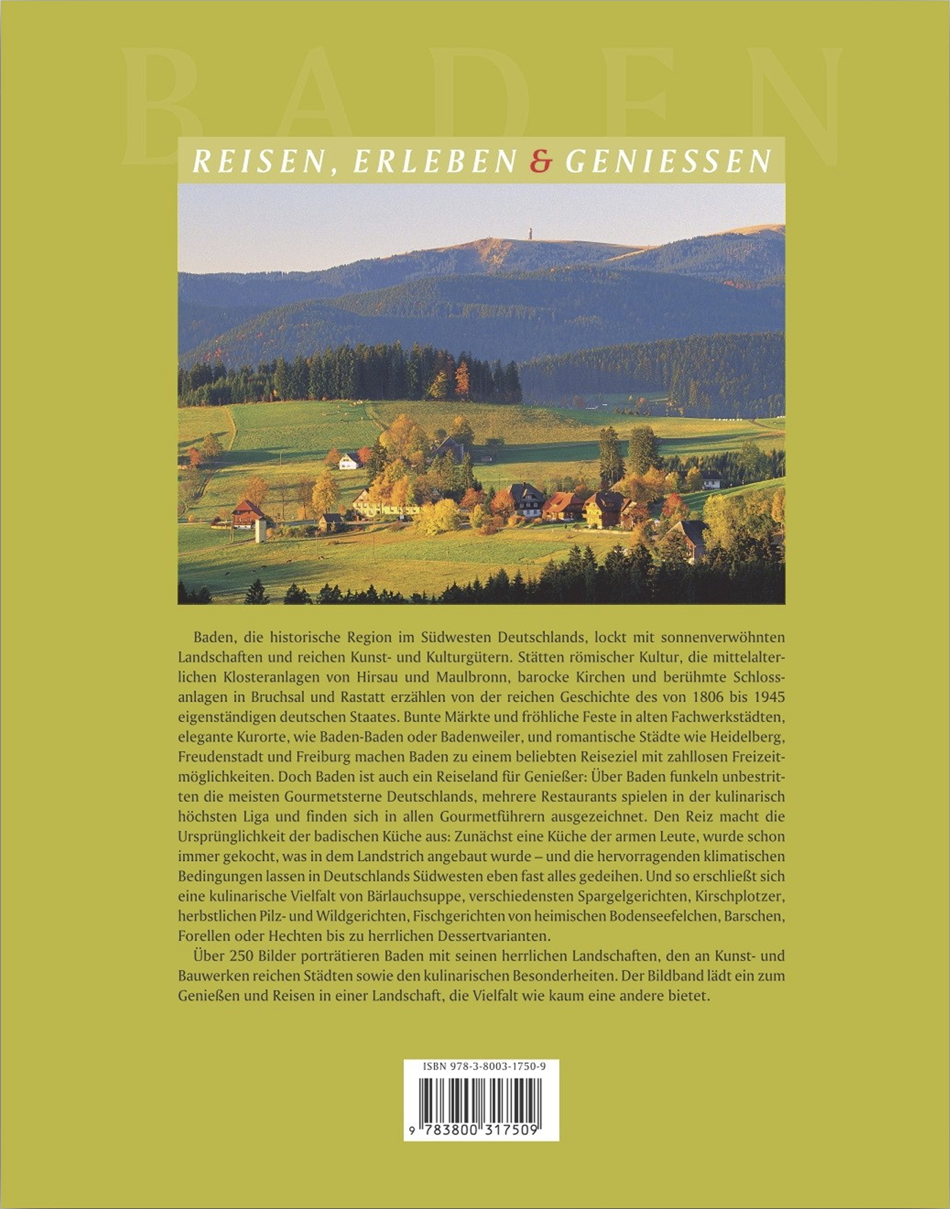 | Schlagworte | Baden • Baden-Baden • Baden (Land); Bildband • Baden-Württemberg • Ballrechten • Bildband • Bodensee • Bretten • Britzingen • Bruchsal • Deutschland • Durbach • Essen • Freiburg • Furtwangen • Grunern • HC/Reisen/Bildbände/Deutschland • Hinterzerten • Insel Reichenau • Karlsruhe • Lörrach • Mannheim • Maulbronn • Neckarsteinach • Reisebildband • Staufen • St. Märgen • St. Peter • Titisee-Naustadt • Trinken • Wertheim • Wollbach-Egerten |