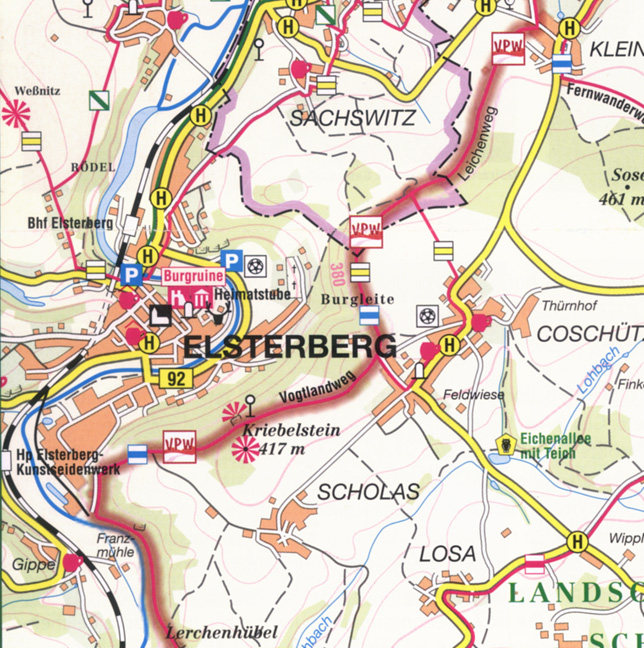 Wandertourenführer für den Verlauf des Vogtland Panorama Weges mit Streckenbeschreibung, Höhenprofilen und Karten im Maßstab 1: 33 000.
